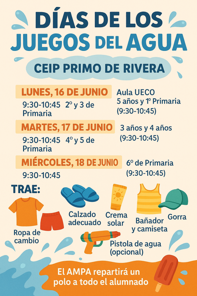 Además, gracias a la colaboración del AMPA, todo el alumnado recibirá un polo helado durante la jornada. ¡Muchas gracias por su implicación!