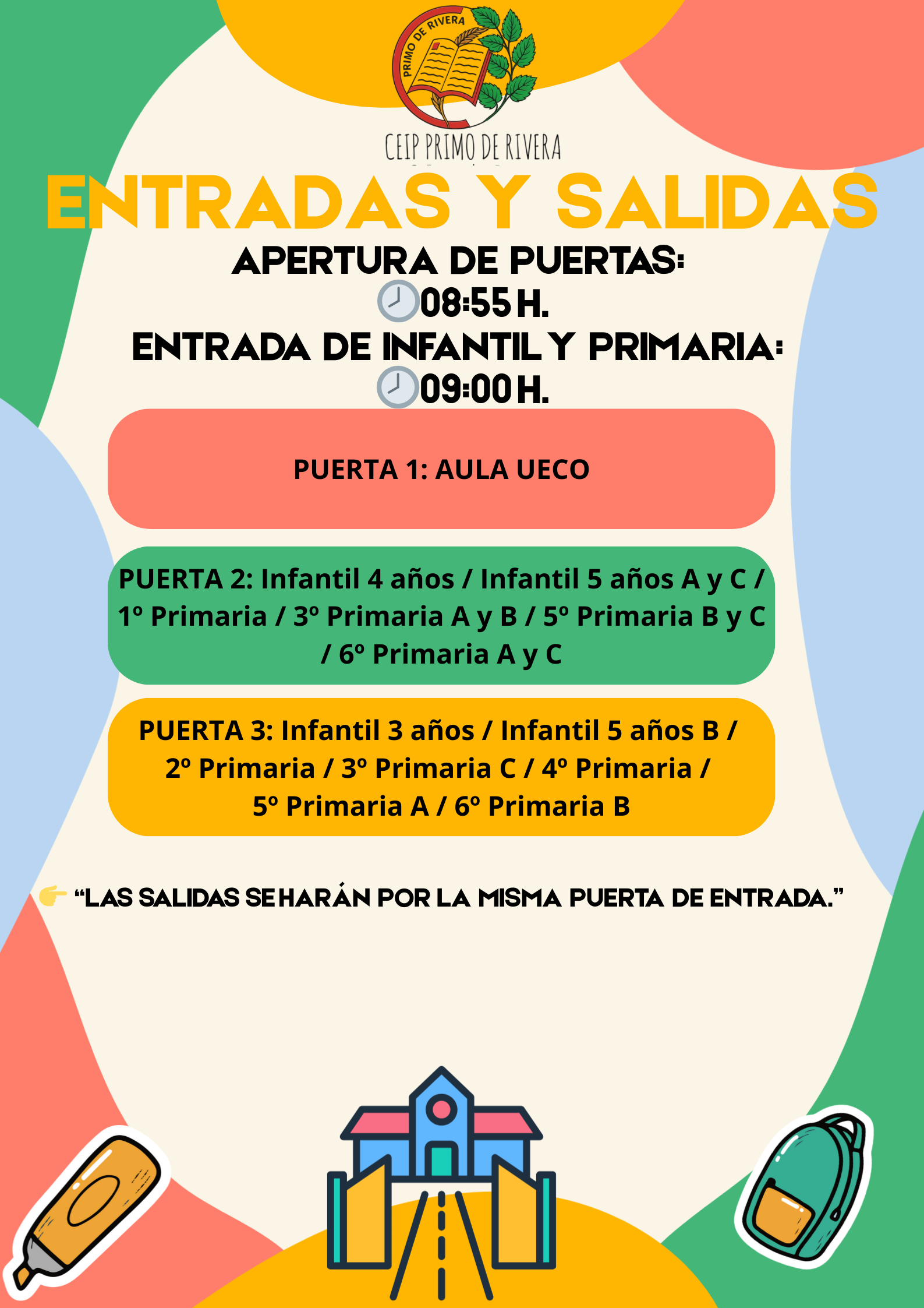 Las puertas del colegio se abrirán a las 8:55 para todo el alumnado.