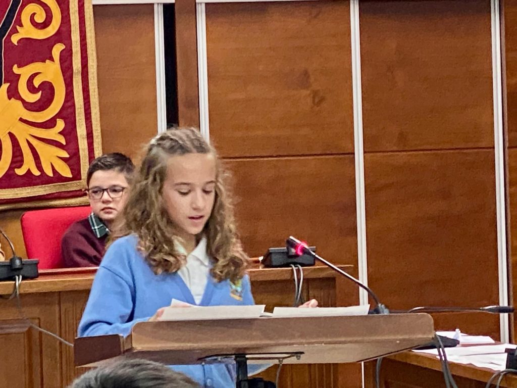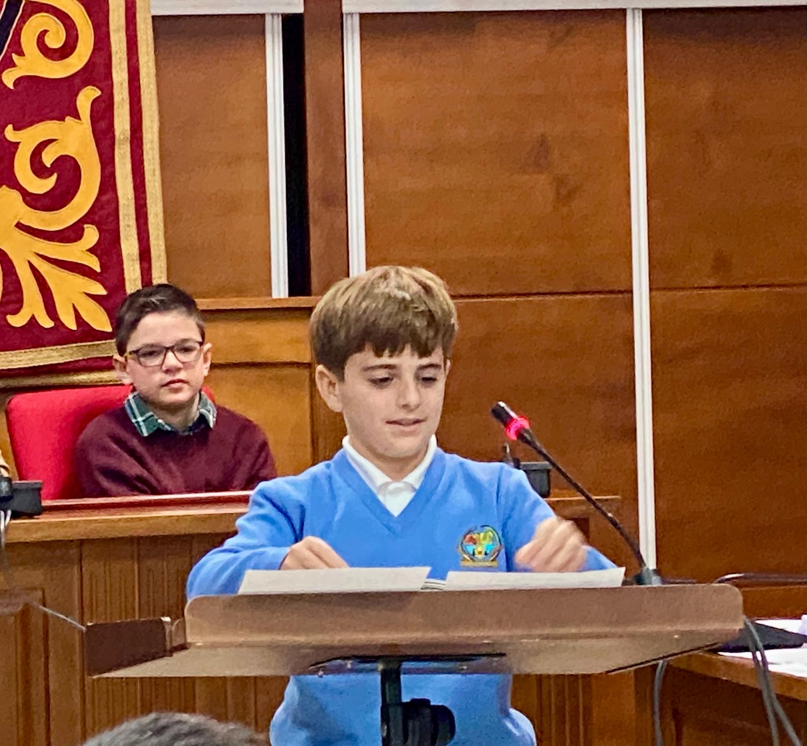 Marcos, Ada, Amalia y Víctor han sido brillantes en su discurso como portavoces de nuestro colegio en el Pleno Infantil Municipal celebrado hoy en el Ayuntamiento.