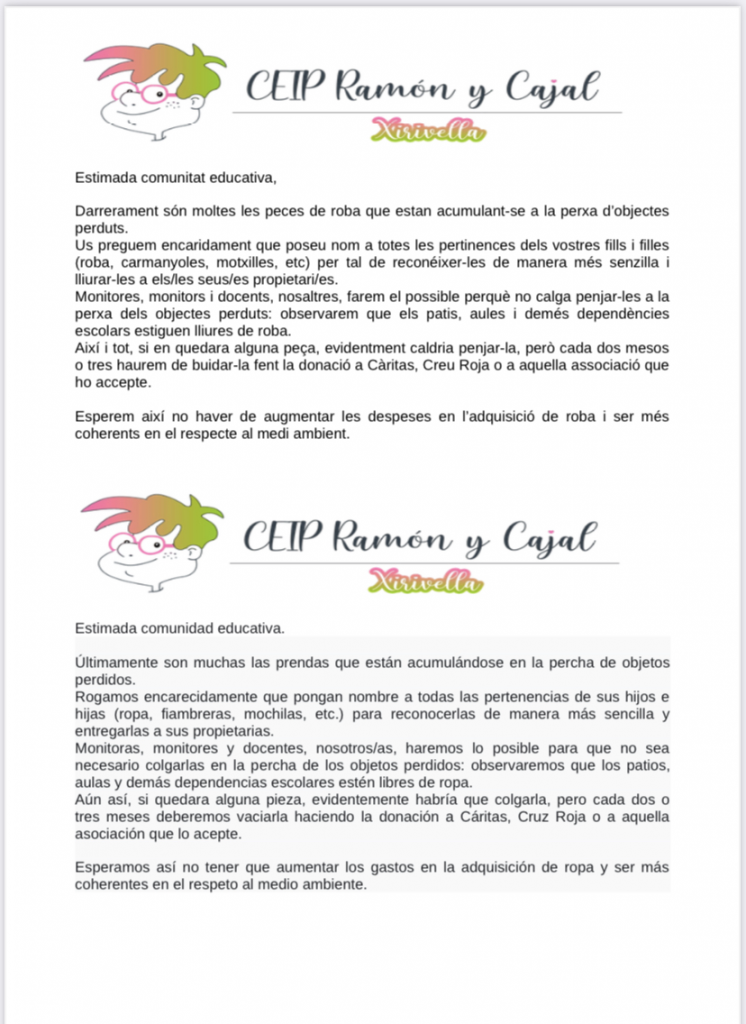 Las familias de 1° y 2° de Primaria podéis pasar a recogerlo a partir del lunes 5 de septiembre.