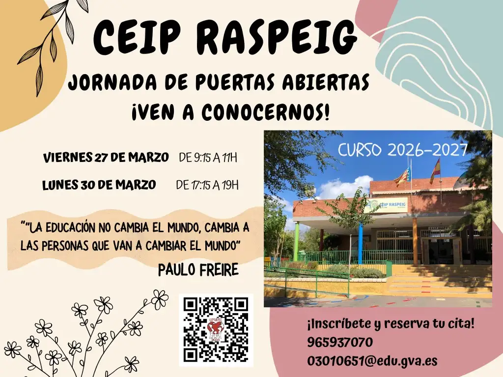 En el siguiente enlace se puede acceder al documento con los pasos a seguir en el proceso de admisión y matriculación en el CEIP Raspeig. En el número 3 se puede solicitar cita presencial para realizar la solicitud telemática.