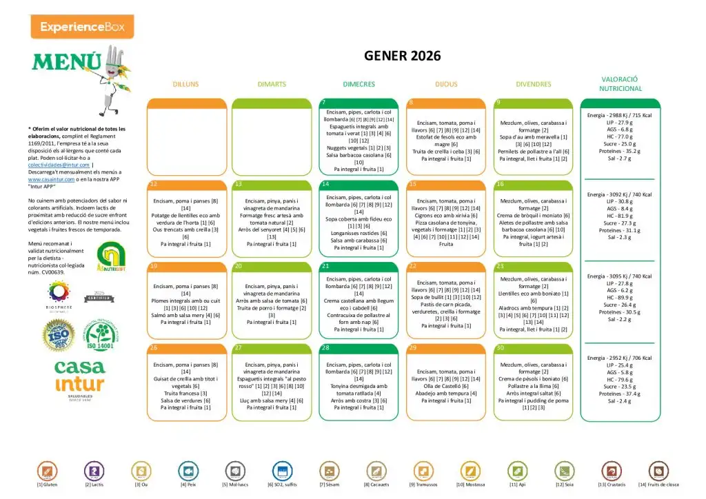 Menjador menú