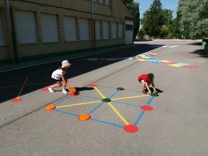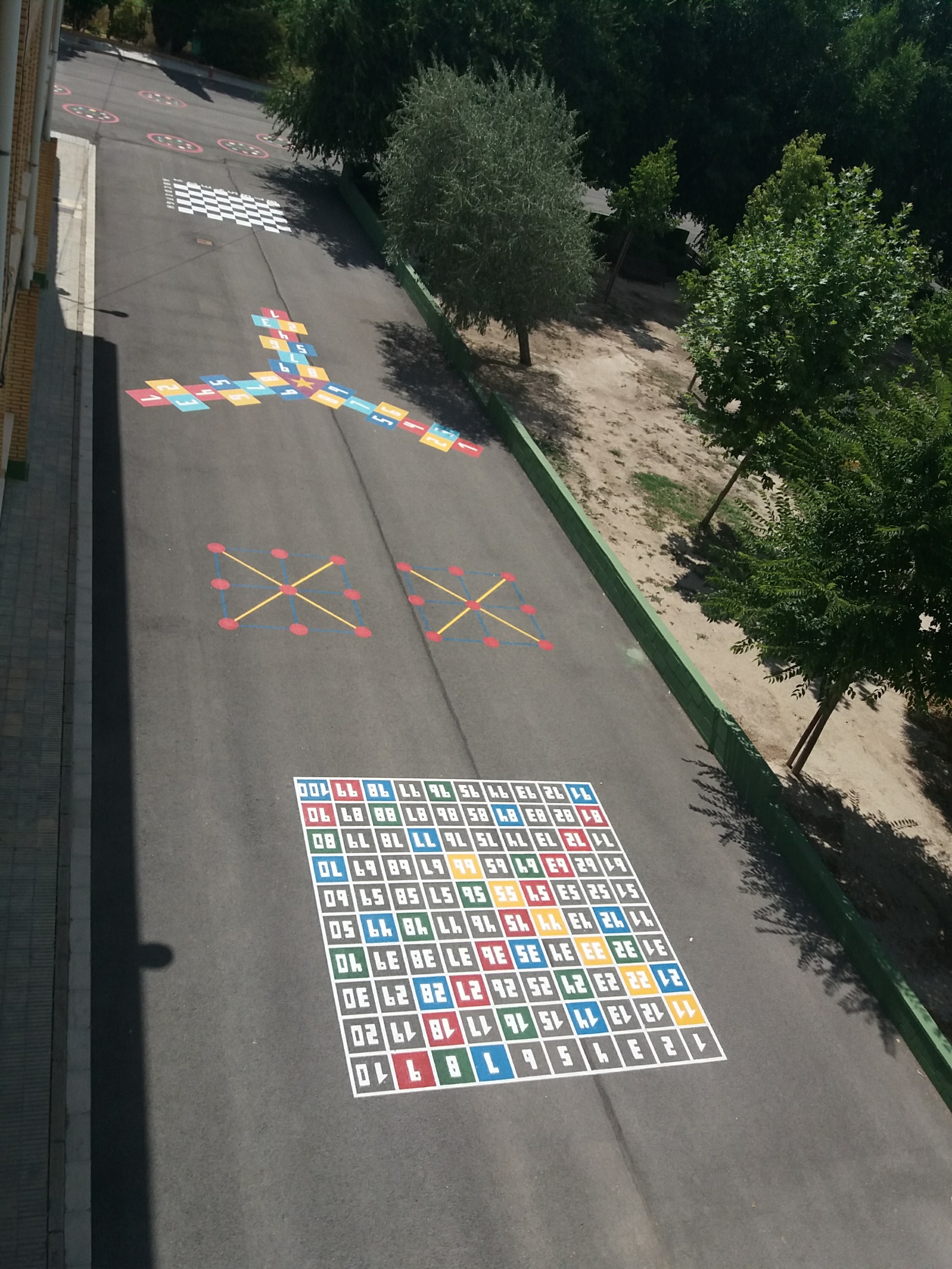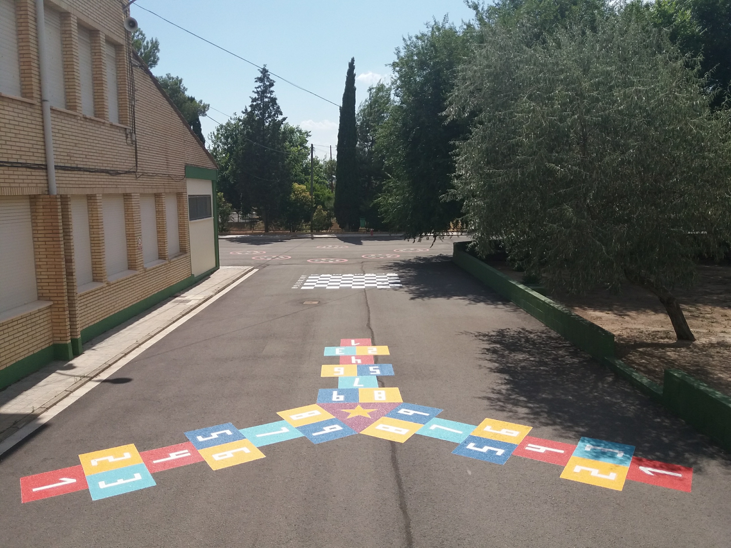 La finalidad de esta actuación ha sido convertir un patio gris en un patio vivo, con color y mucho juego, donde poder disfrutar y aprender todos juntos. Por ello, y como parte de nuestro Proyecto Deportivo de Centro, se han pintado 17 juegos infantiles a lo largo de toda la zona asfaltada de nuestro centro; escaleras… De este modo conseguimos dotar a nuestro alumnado de un abanico más amplio de actividades para jugar en el patio y que mejoran la convivencia entre ellos y ellas.