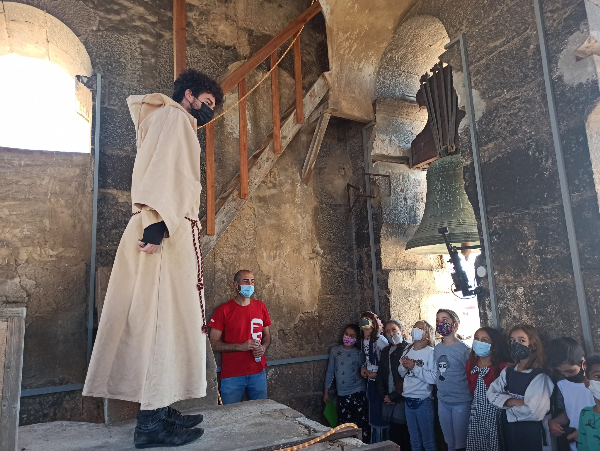El recorrido ha comenzado en la Plaza Mayor, hemos subido al campanario de Santa María y hemos escuchado el sonido de todas las campanas, conociendo que la campana más grande se llama María. Hemos ido a visitar a los gigantes y cabezudos, así como la Casa Félix. La actividad ha concluido en la Plaza del Beso donde hemos conocido el motivo de su nombre;)