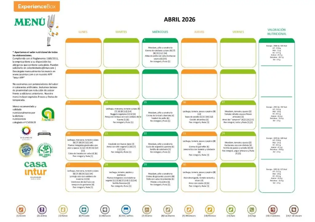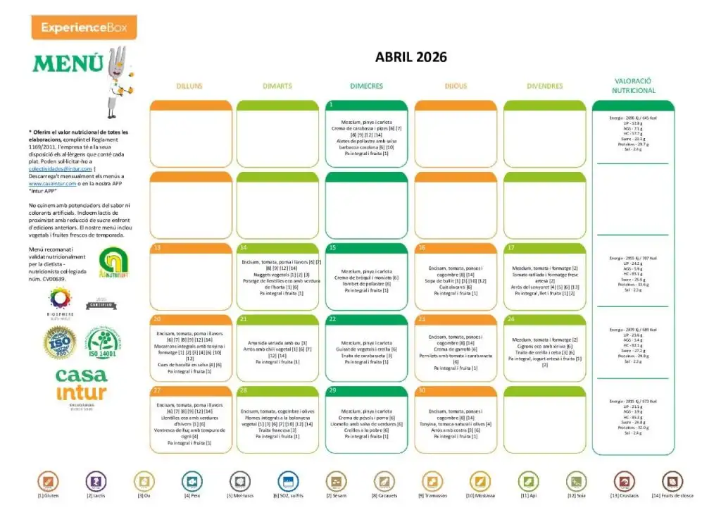 MENÚ MES D’ABRIL 2026