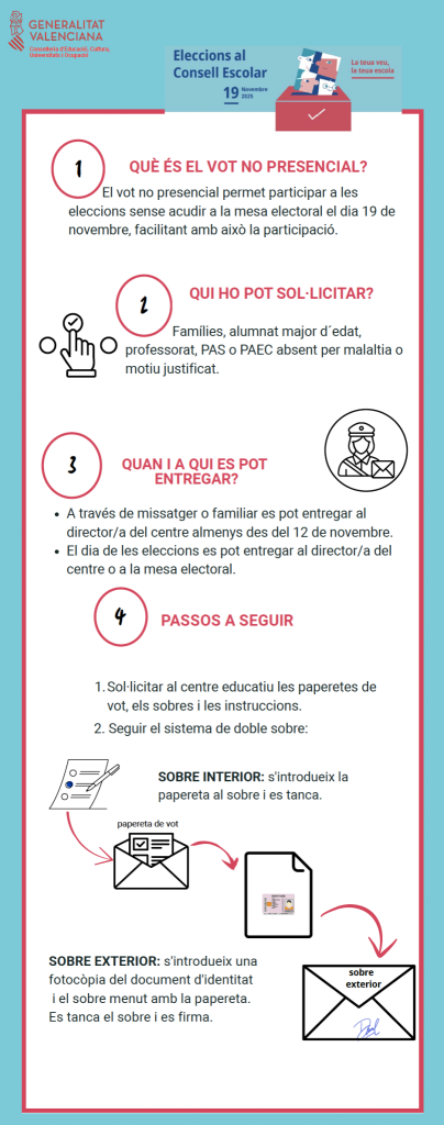 A partir de hui estan a la vostra disposició les paperetes del sector de les famílies i s’inicia la recollida del vot no presencial.