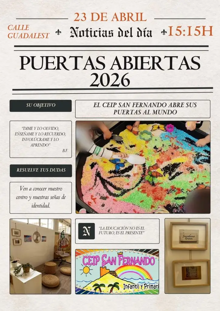 El próximo jueves 23 de abril nuestro cole abrirá sus puertas para todas las personas que estén interesadas en visitarlo. No es necesaria inscripción previa.