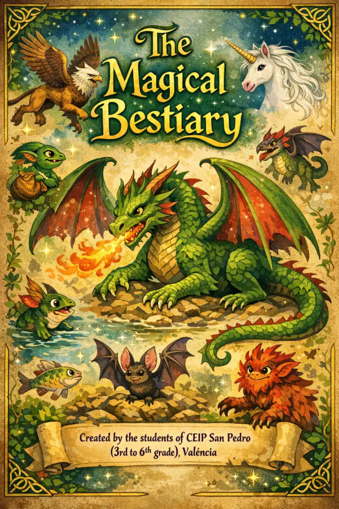 Els alumnes de 3r a 6é de CEIP San Pedro han creat un meravellós bestiari dins del projecte Innov@Arts de la Conselleria. Aquest treball recull criatures fantàstiques, inspirades tant en la imaginació de l’alumnat com en la fauna i el folklore valencià. Cada pàgina combina creativitat, dibuix i narrativa, fomentant la participació activa i el gust per l’art i la lectura. Un projecte que posa de relleu el talent i la imaginació del nostre alumnat.