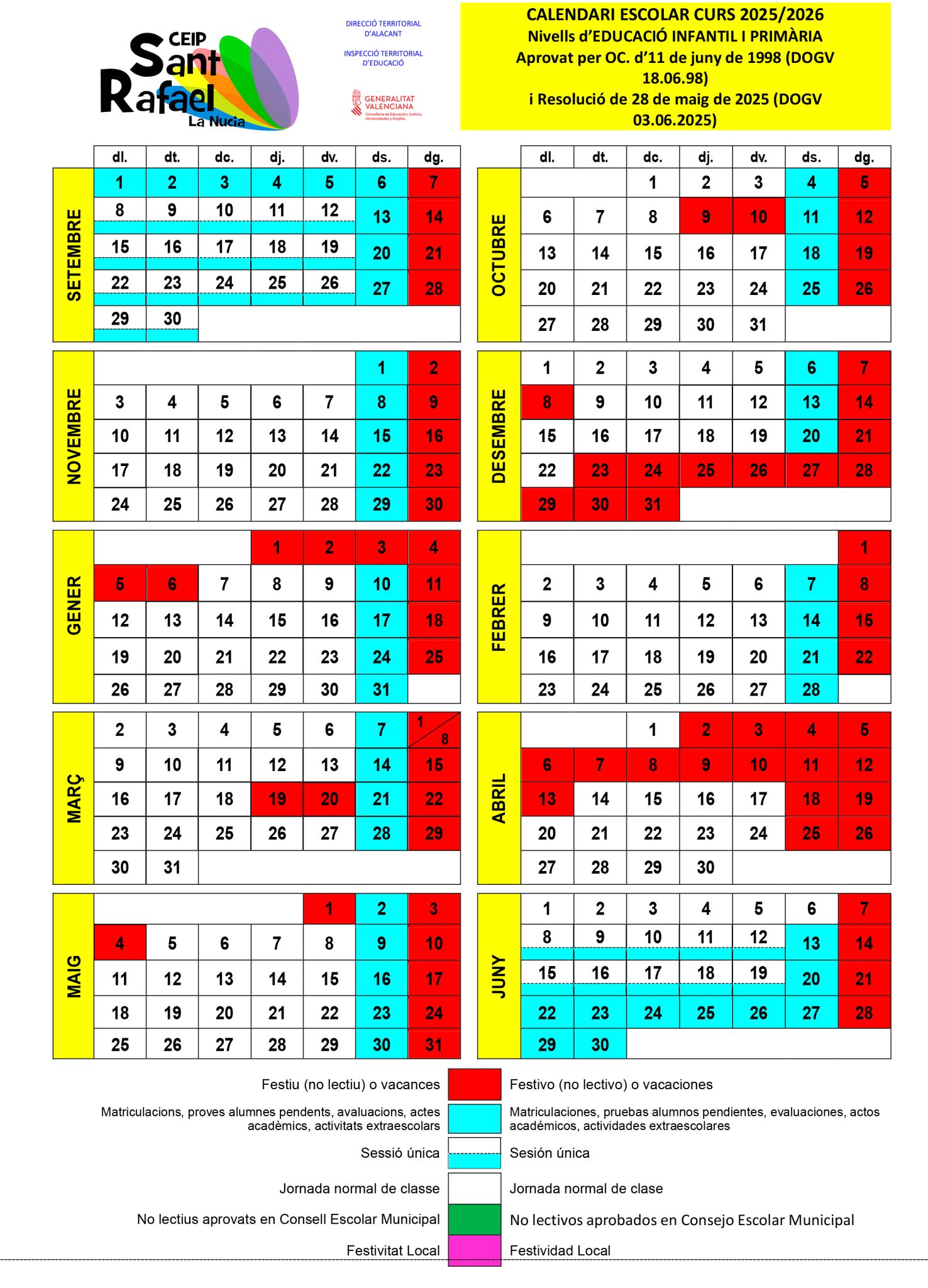 📆 HORARIS DE SETEMBRE I JUNY 2025 – 2026 📆