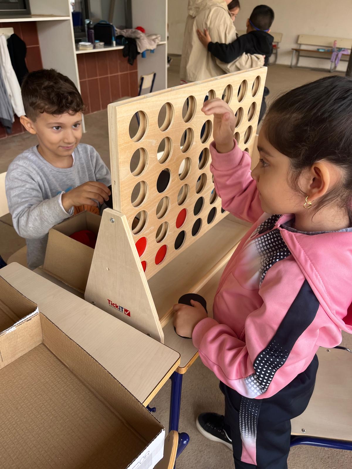 Cada día en el patio tenemos una estantería con libros, colchonetas…aquí, pueden pasar un rato relajado. El patio no siempre tiene que ser para tener un juego activo. Quizás hay niños y niñas que prefieren esta actividad más relajada. Seguimos en proceso!