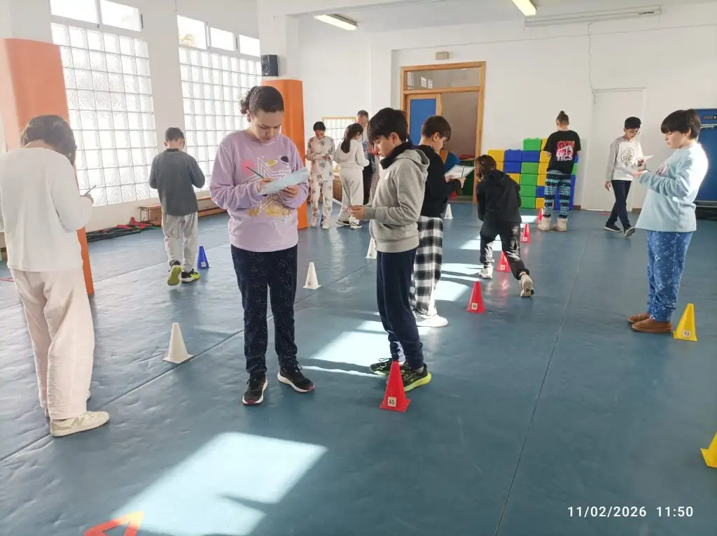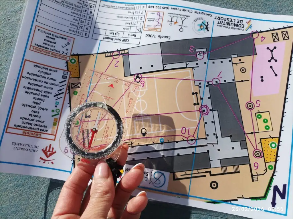 En la primera sessió, l’11 de febrer, hem practicat a orientar-nos amb un plànol i pinces, per a marcar el recorregut en el plànol, dins d’un espai tancat, com és el gimnàs del nostre centre.