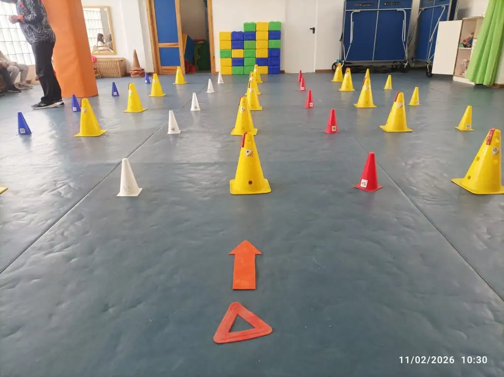 Avui, 12 de novembre de 2025, hem treballat al pati de l’escola un esport adaptat, BOCCIA.