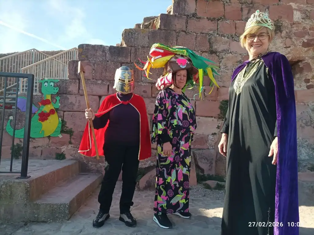 El divendres 27 de febrer ha sigut un dia molt especial. L’alumnat de primer cicle hem anat caminant fins al Castell i allí ens esperaven unes àvies, Juani, Amparo i Mari Carmen, que ens han contat un conte:”Sant Jordi i el Drac”, disfressades i il.lusionades ens han deixat en la boca oberta.