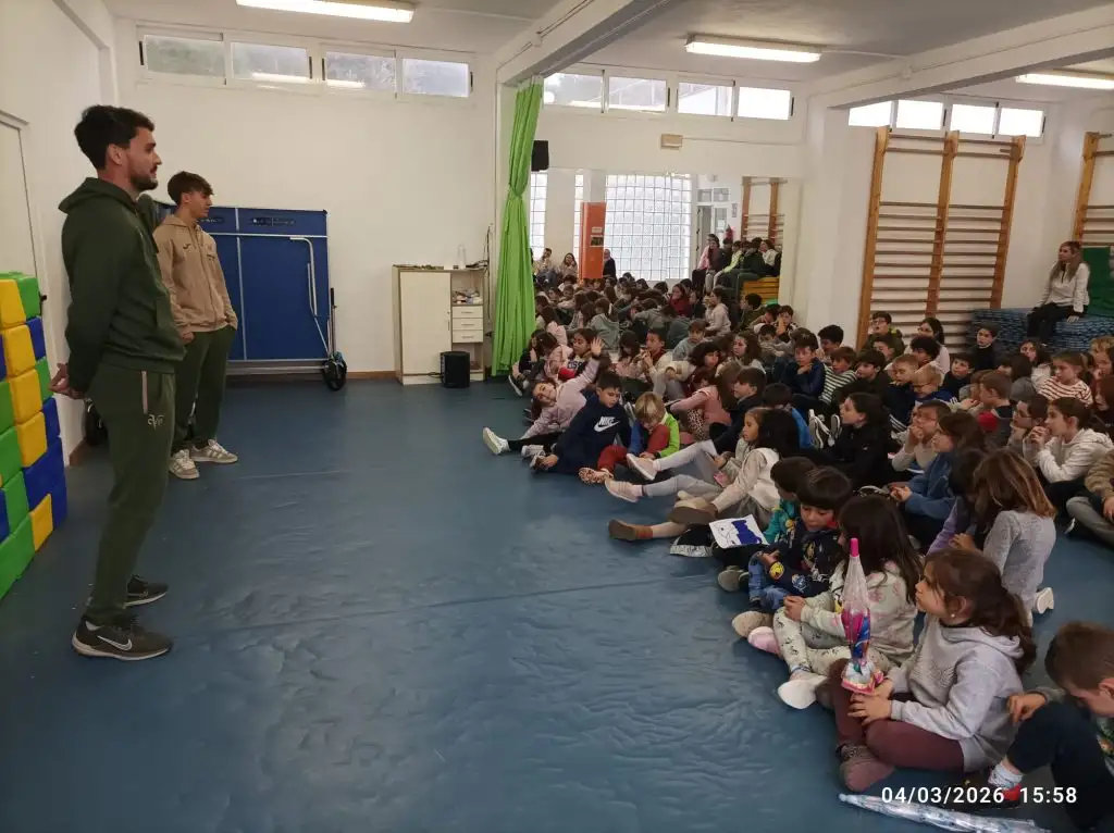 Un exalumne sempre és una alegria que torne al col·legi, on va anar en la seua etapa d’infantil i primària. Ha vingut a contar-nos com li va la seua trajectòria esportiva dintre del club de fútbol del Villareal i nosaltres estarem pendents de la seua evolució.