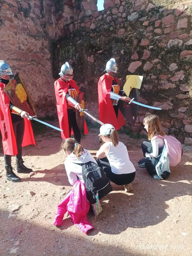 L’alumnat de segon cicle hem anat caminant fins al Castell i allí ens esperaven unes àvies: Esther, Clara i Gloria, que ens han preparat una gimkana pel Castell del nostre poble. L’alumnat s’ha quedat bocabadat, per la passió i destressa dels tres cavallers.