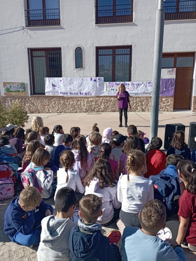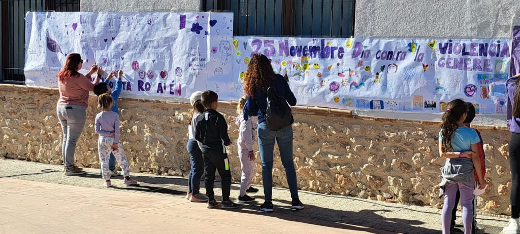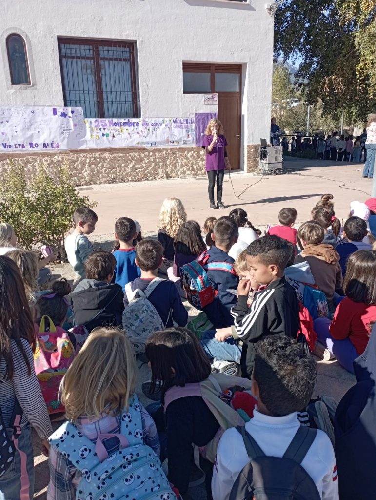 Divendres l’alumnat de 1r acompanyats pels seus “german@s majors” de sisé i l’alumnat de 2n van baixar al poble per a mostrar el seu ferm desig que s’elimine la violència contra les dones i que en les famílies el tracte siga amable.