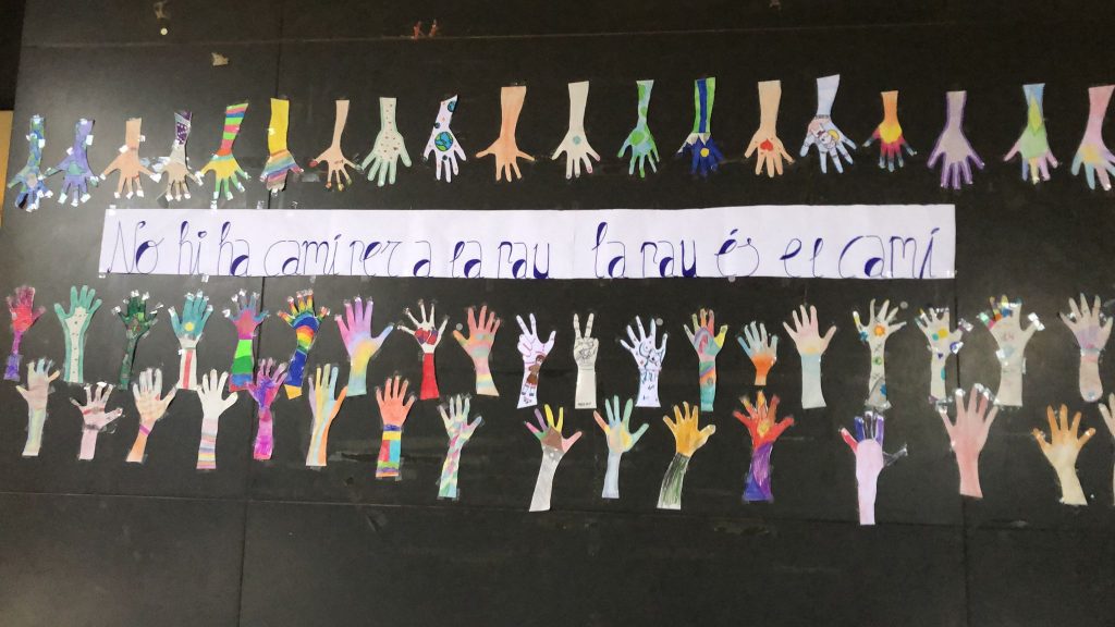 Hem parlat de l’important que és utilitzar la paraula per a expressar el que sentim i explicar a l’altre sense utilitzar la violència: en casa, al col.le, al poble i així posar el nostre granet de sal, com deia Gandhi, per aconseguir la pau.