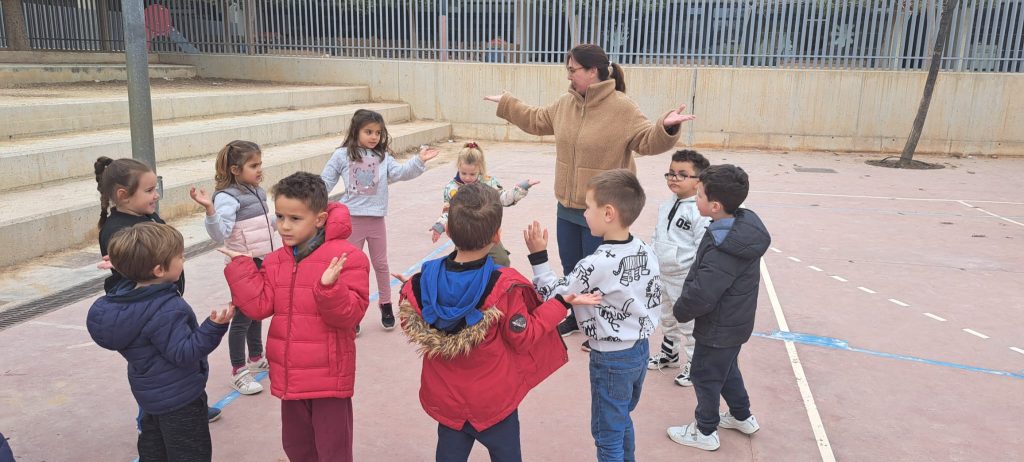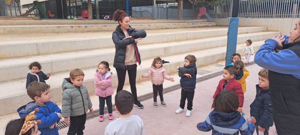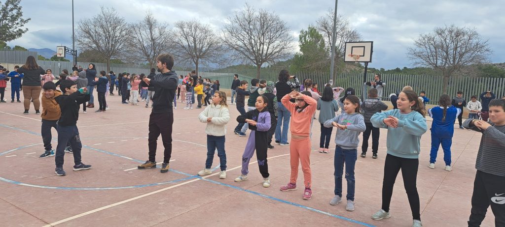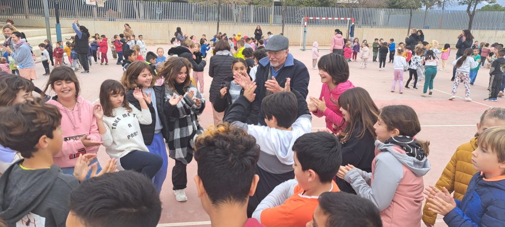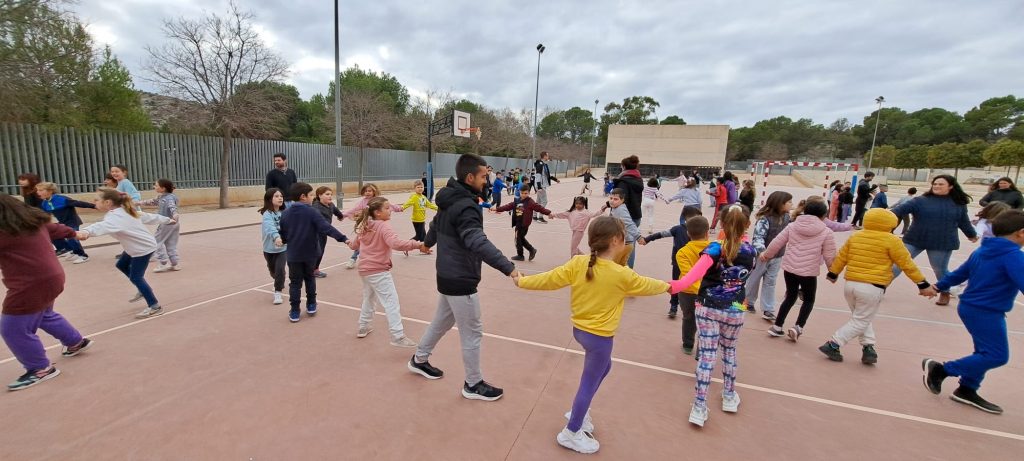 Hem fet murals als corredors i hem eixit tot@s al pati en rogles per a cantar i ballar una cançó preciosa que es diu “Vine a la Festa”