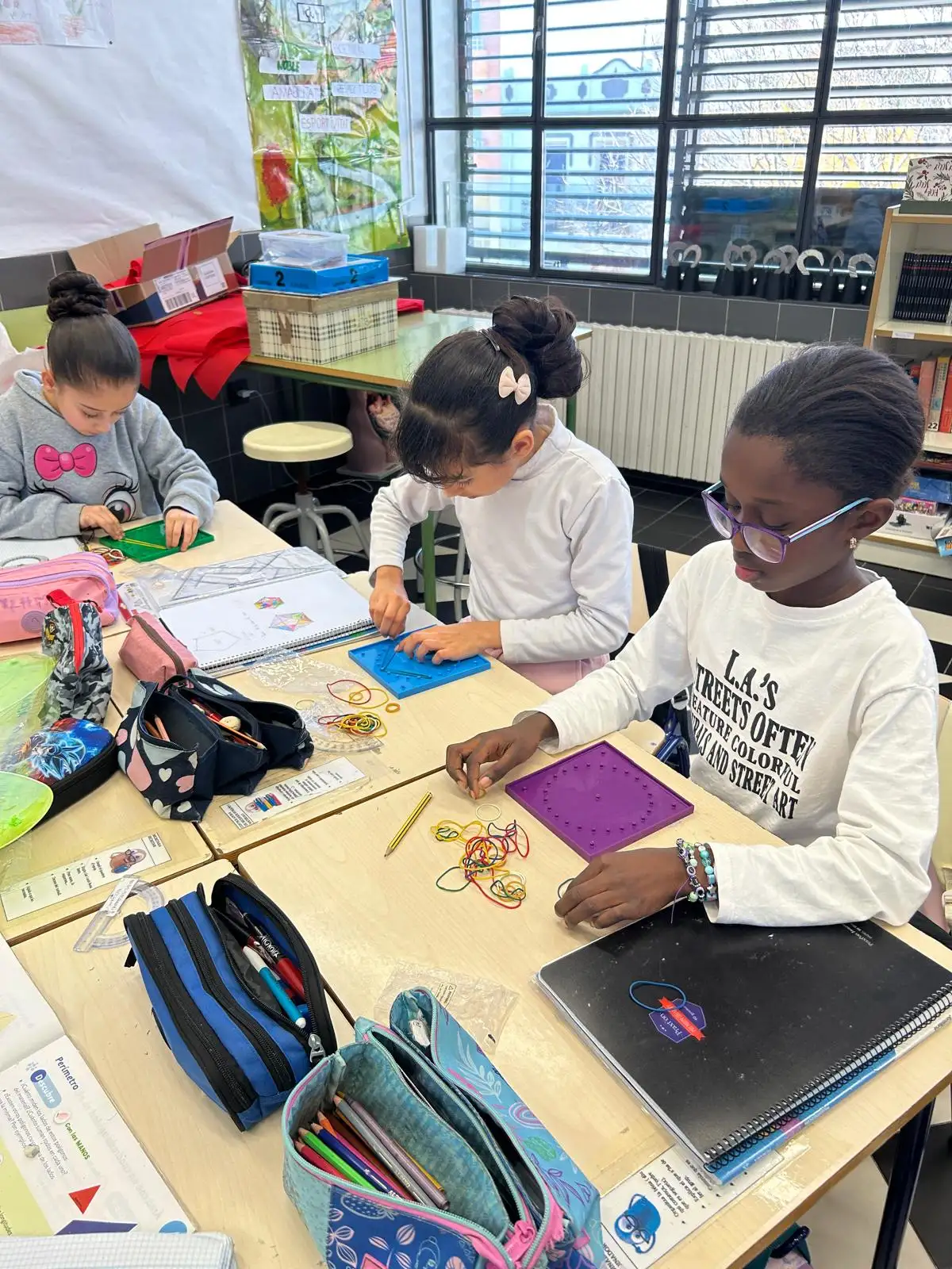 Hui la classe de 4tA ha estat treballant els polígons de forma manipulativa i lúdica. Per practicar i entendre les seues característiques hem utilitzat els geoplans. Ha sigut molt enriquidor i divertit!!