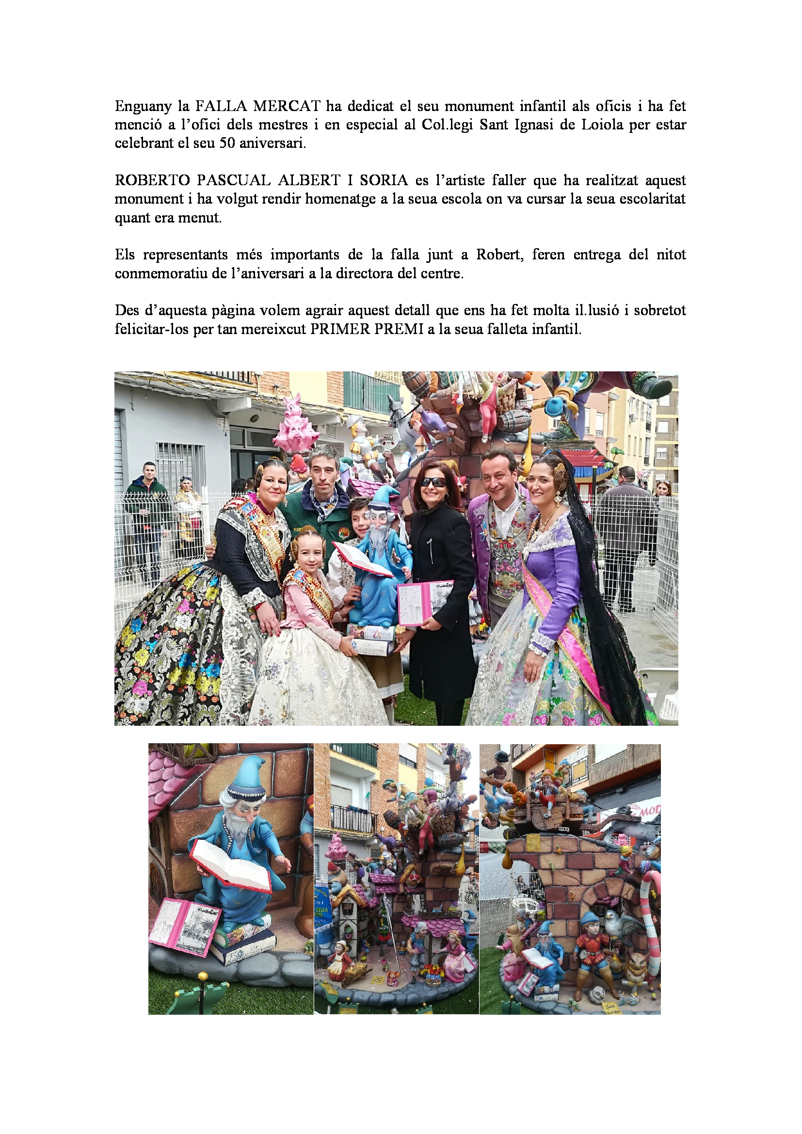 Mención a Sant Ignasi de Loiola a la Falla del Mercat