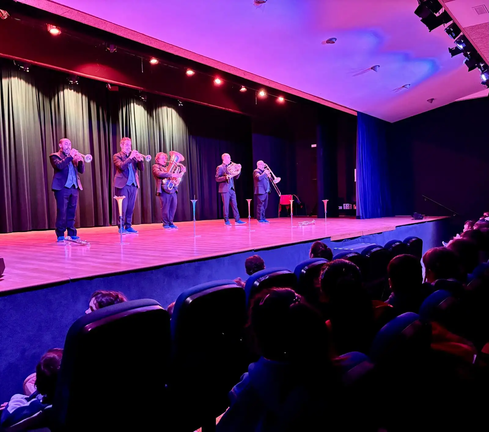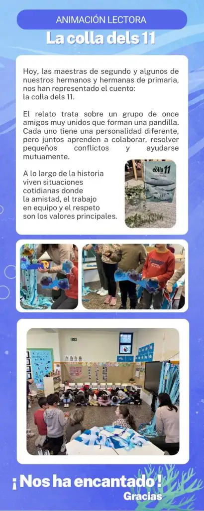 El alumnado de Infantil y Primaria ha disfrutado de una actuación musical de Spanish Brass, subvencionada por el Ayuntamiento, dentro de las actividades de «juliol musical». El alumnado ha escuchado diversas piezas musicales interpretadas con instrumentos de viento-metal.
