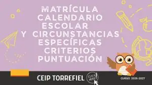 Información sobre el procedimiento del calendario de matriculación y circunstancias específicas que van a puntuar en el proceso de admisión.