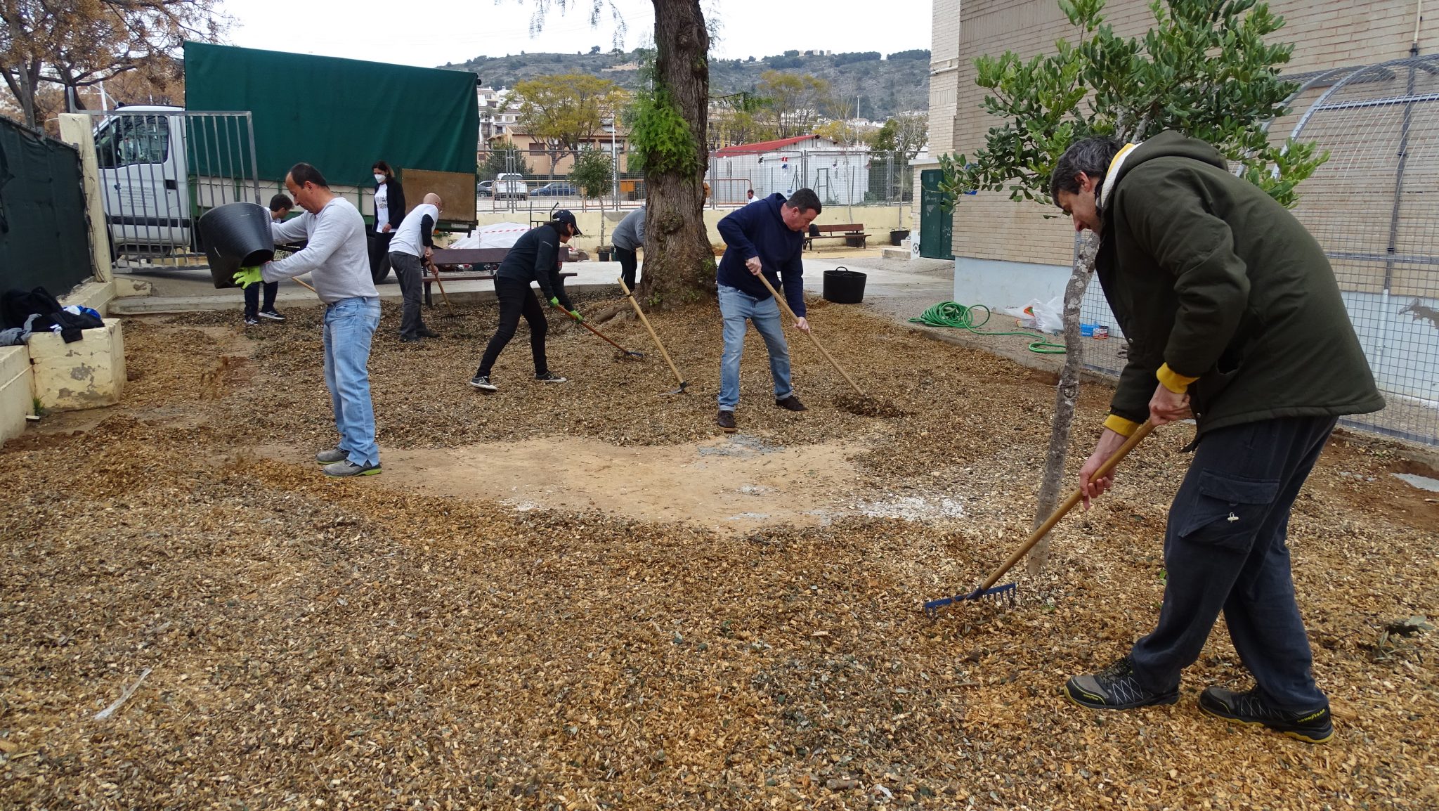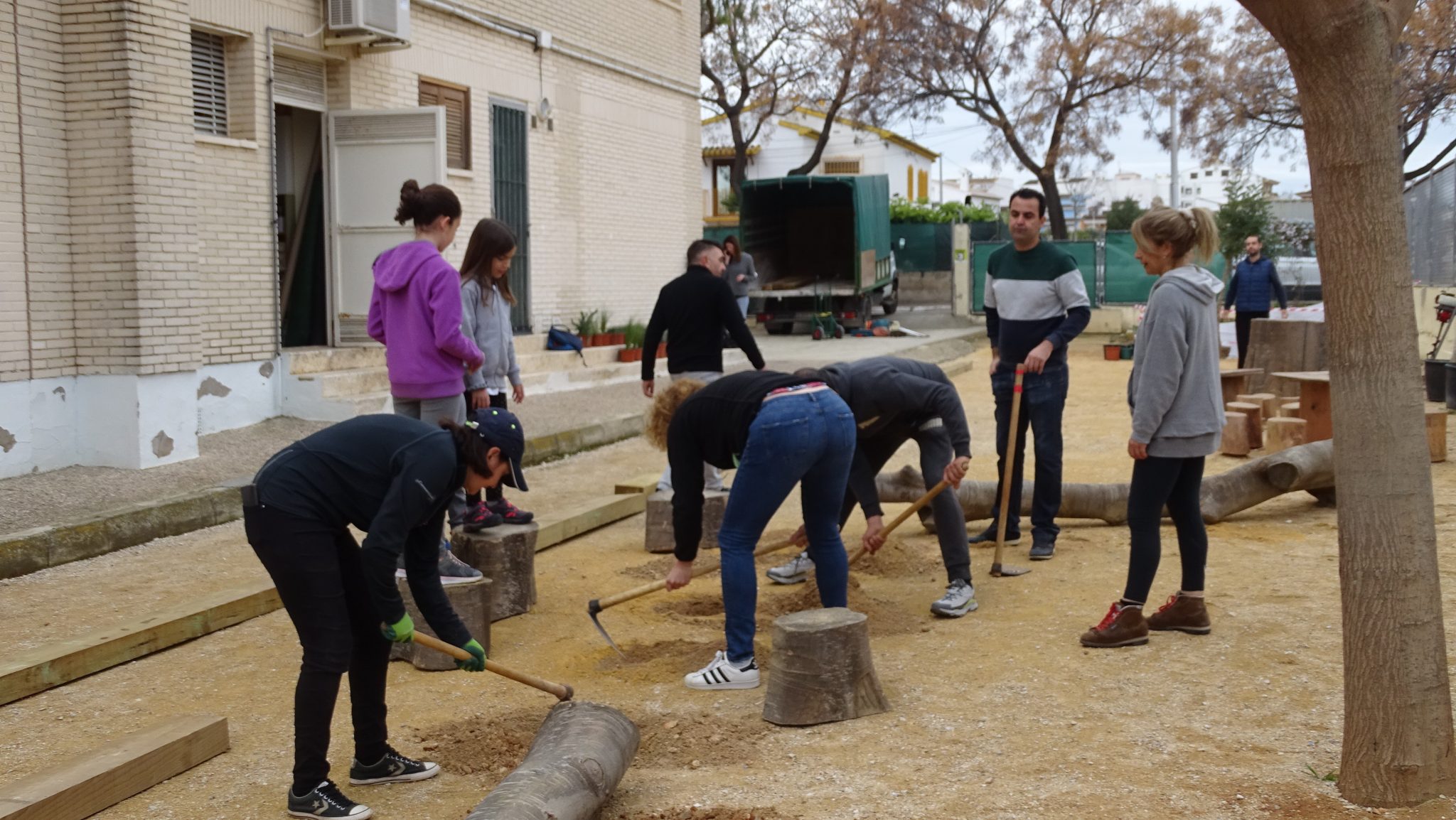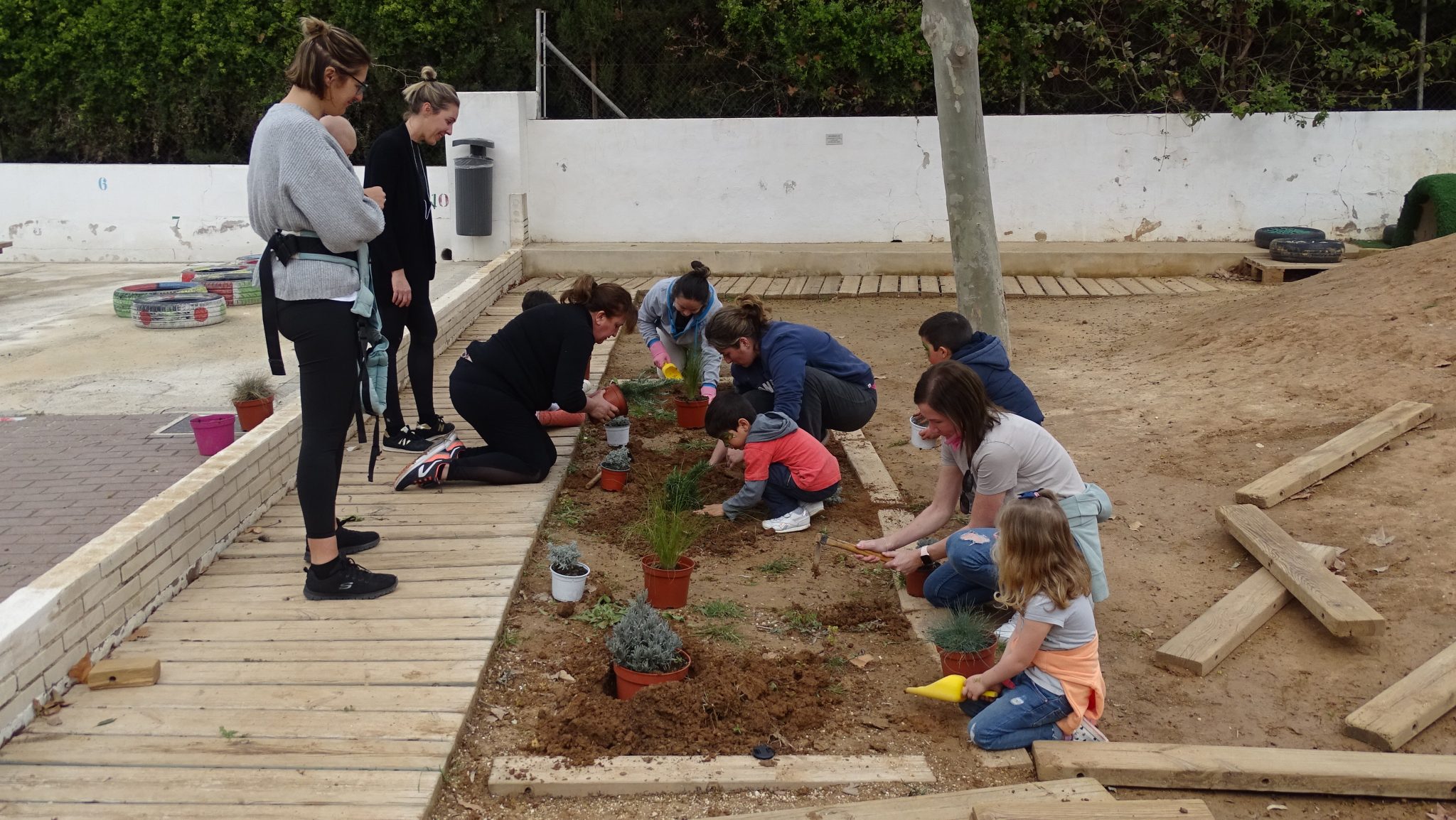 Ha estat un jornada completa, on gairebé 40 famílies han estat ajudant i aportant per a aconseguir realitzar un seguit d’accions que pràcticament han fet possible que dilluns la part de darrere del pati de primària siga una zona plena d’aventures i lloc de creació de jocs inversemblants