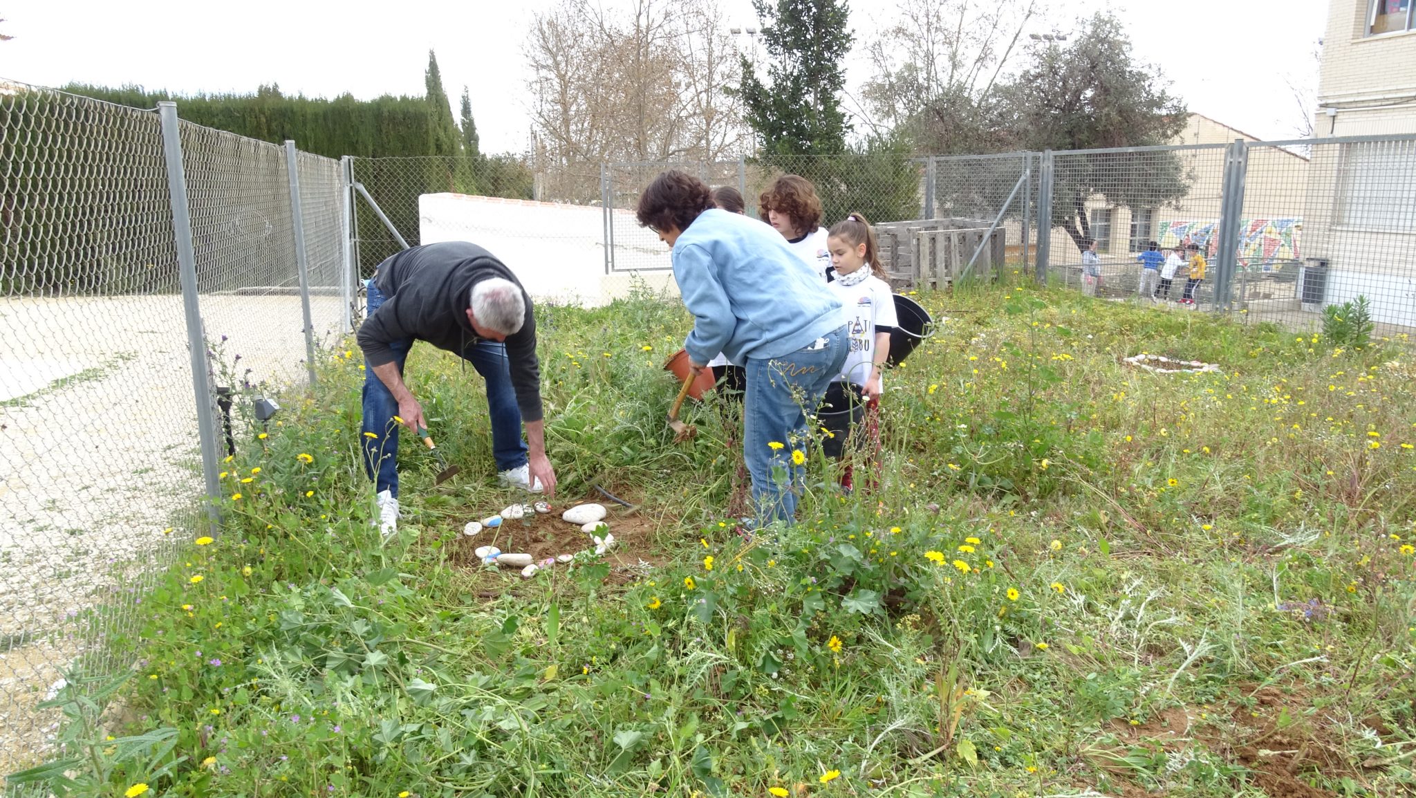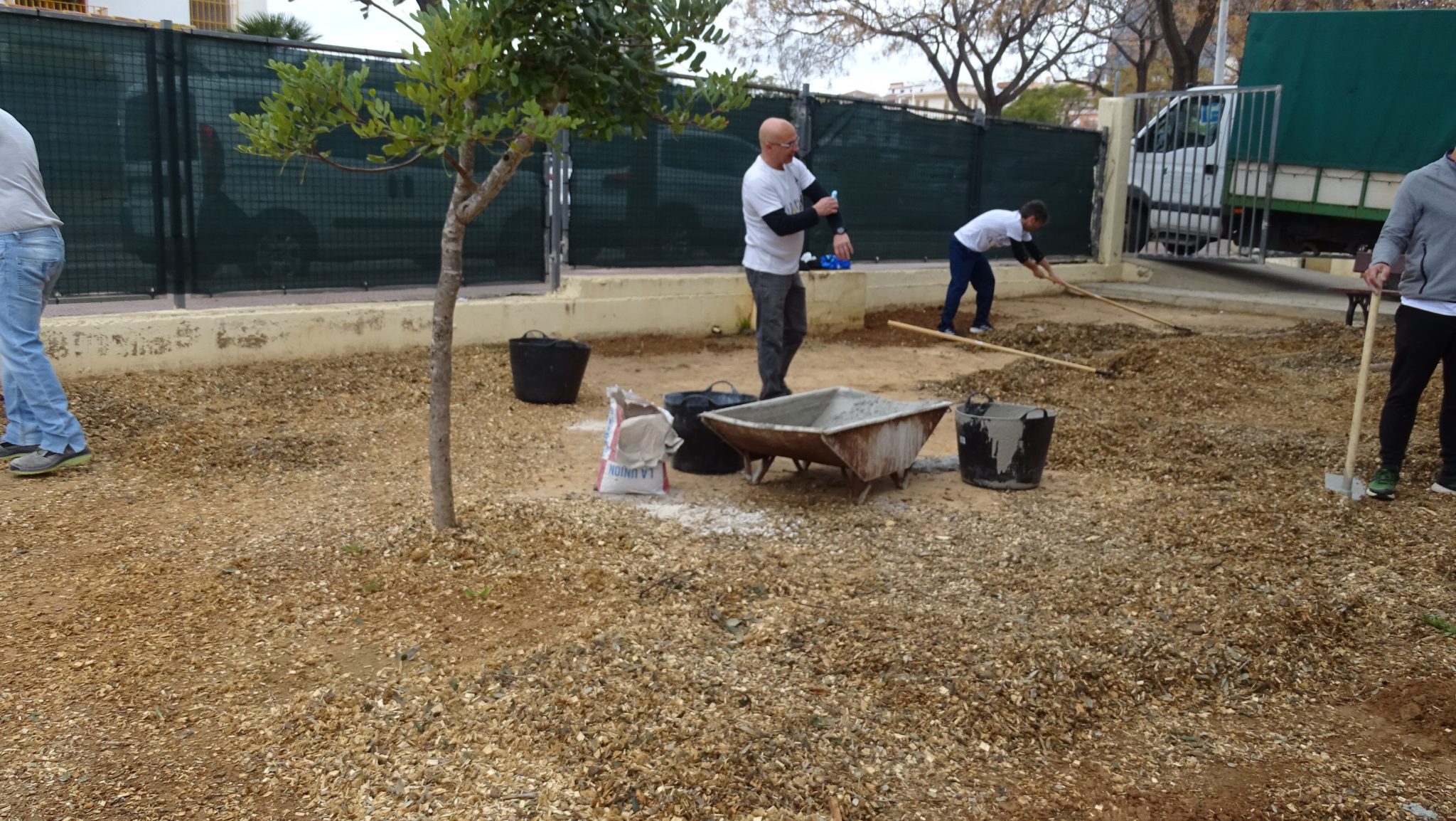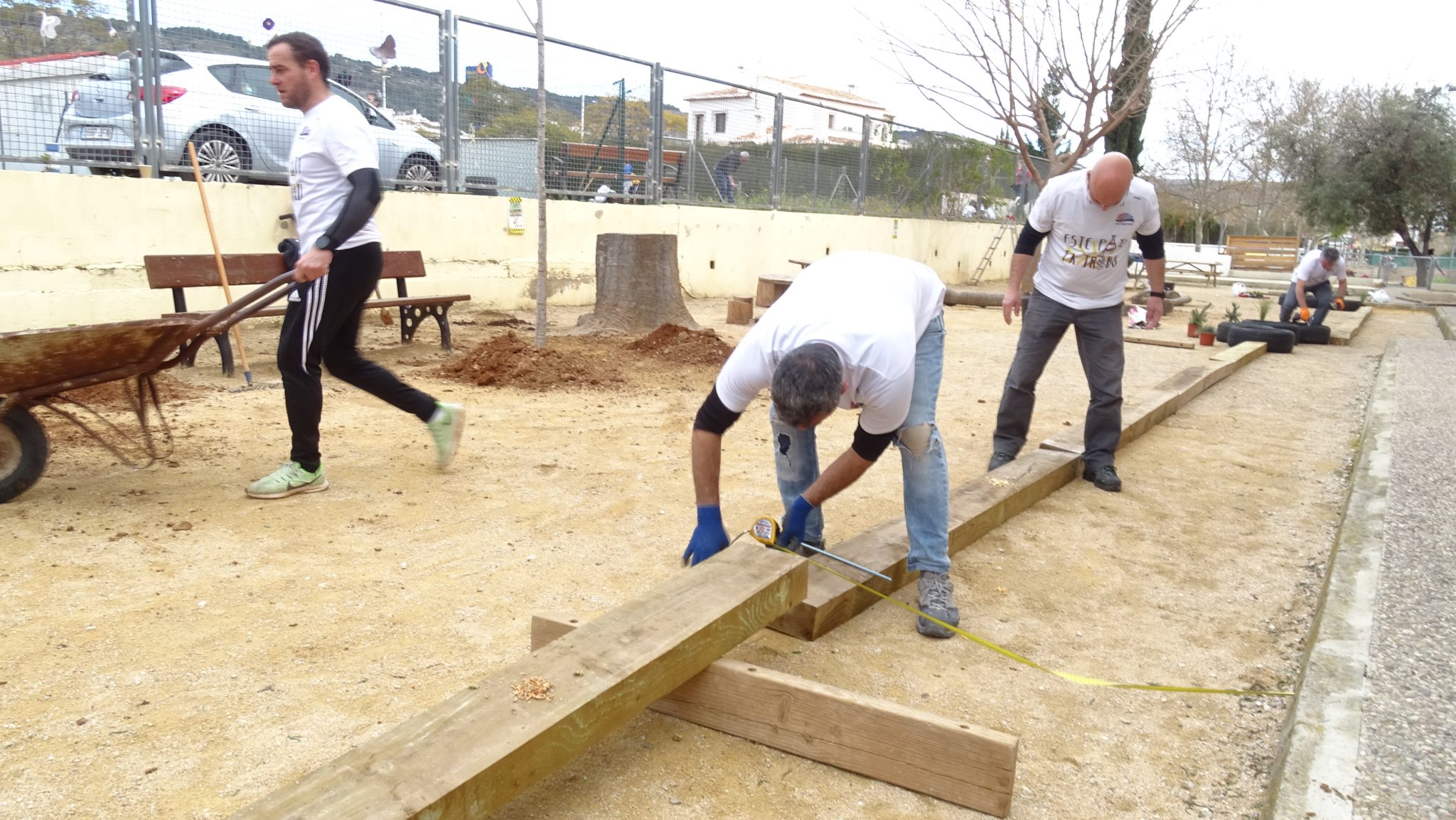 Ha estat un jornada completa, on gairebé 40 famílies han estat ajudant i aportant per a aconseguir realitzar un seguit d’accions que pràcticament han fet possible que dilluns la part de darrere del pati de primària siga una zona plena d’aventures i lloc de creació de jocs inversemblants