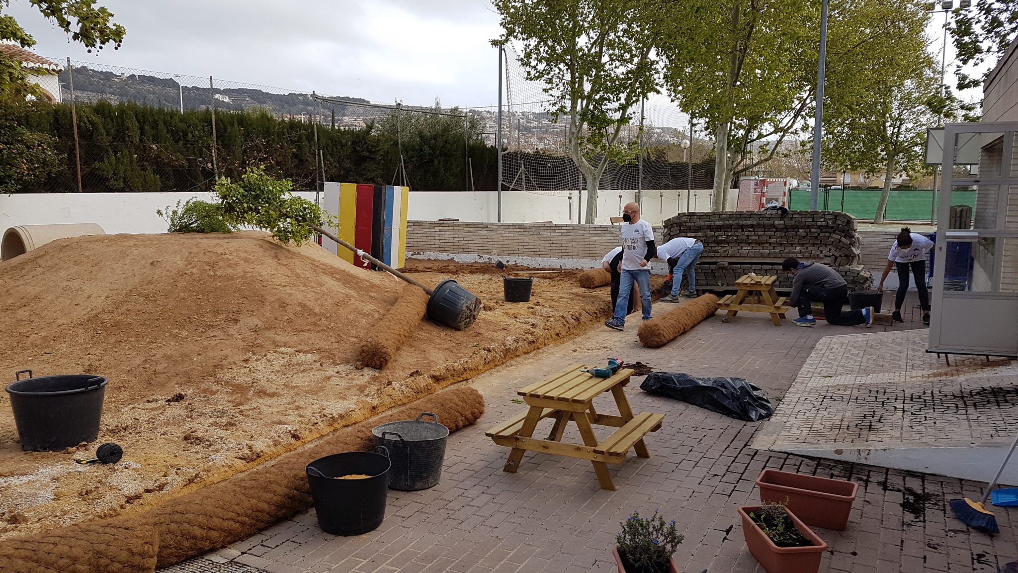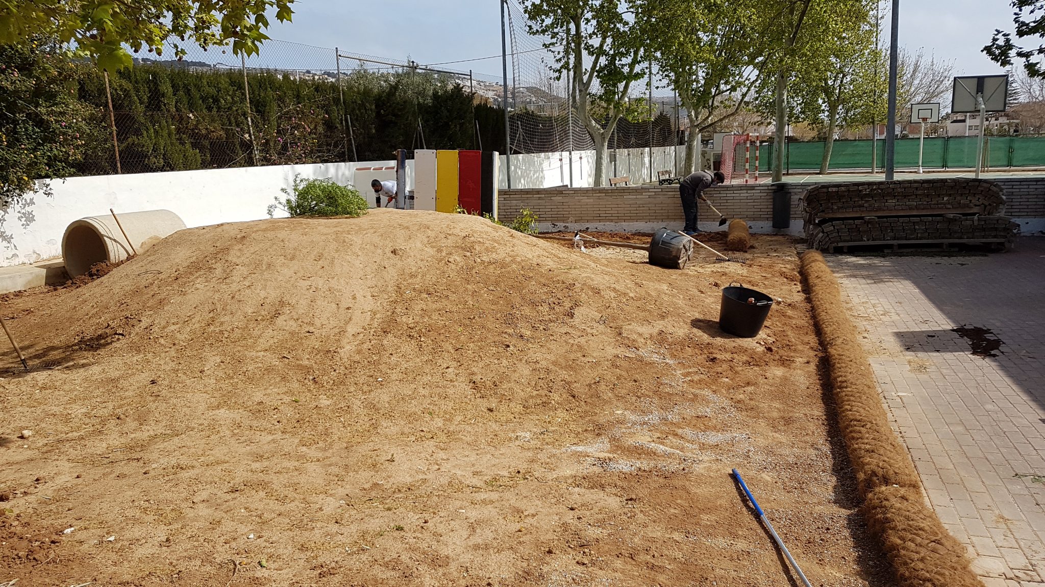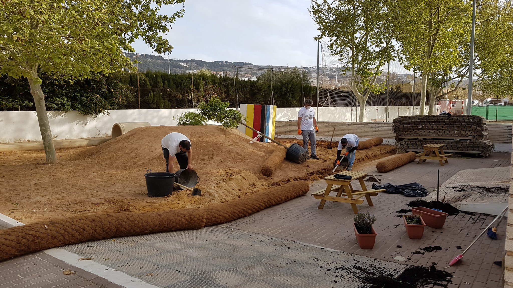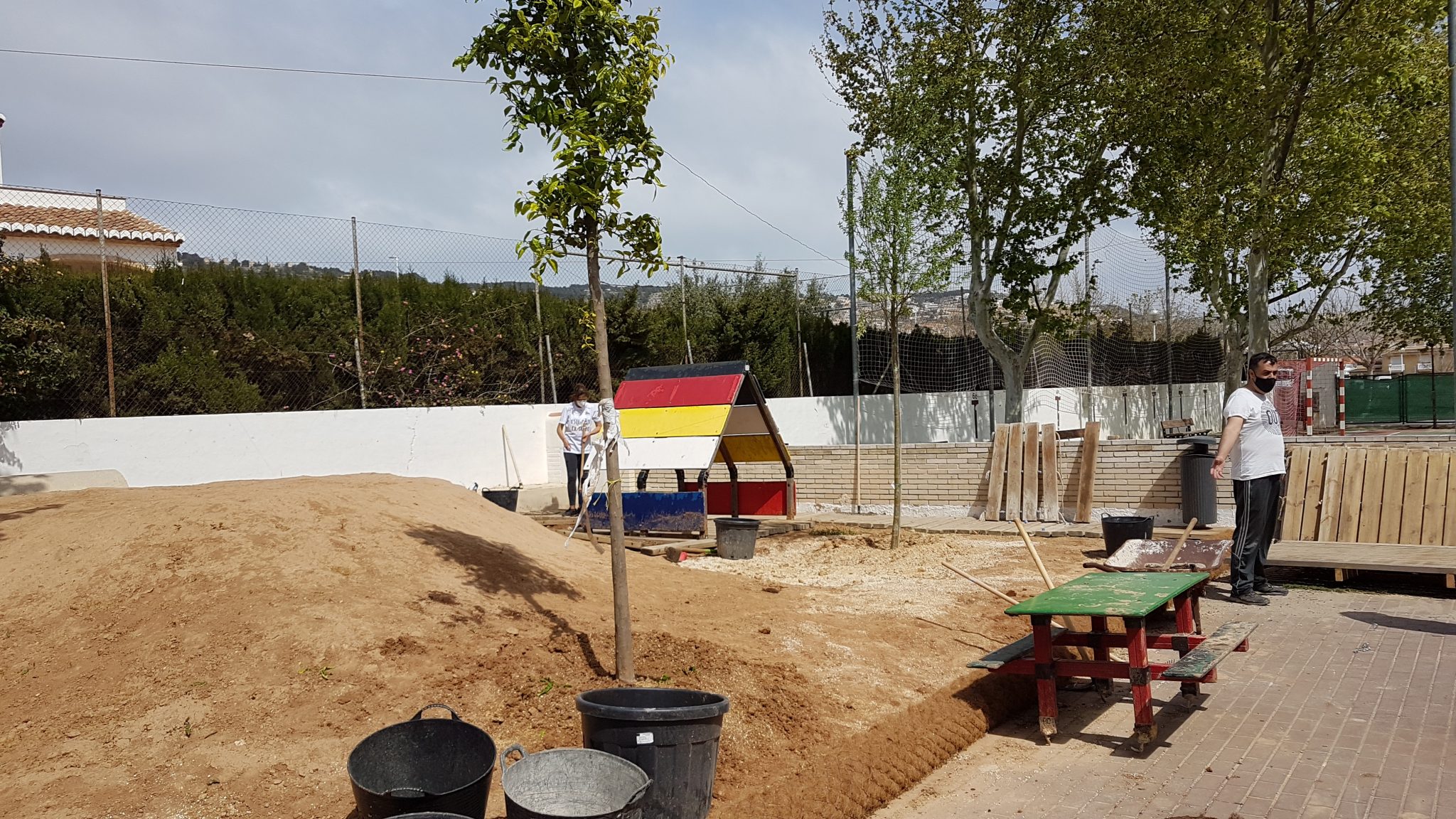 Fa ja tres anys des què va començar aquest projecte on tota la comunitat educativa està involucrada i després d’algunes actuacions puntuals de millora del nostre pati, hui, diumenge 28 de març de 2021 s’ha realitzat la primera de les grans intervencions pendent que tenim per re-naturalitzar i transformar el nostre pati en un entorn viu, ple de vivències, de misteris, totalment coeducatiu, inclusiu i encisador pels nostres infants.