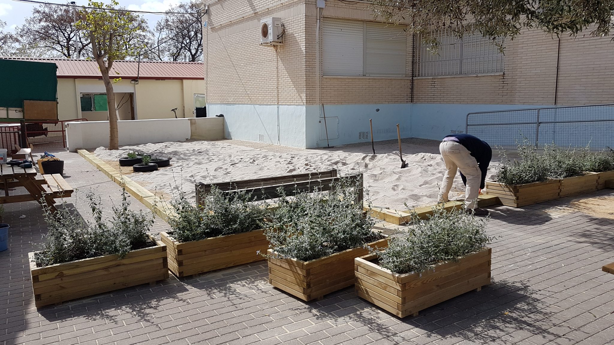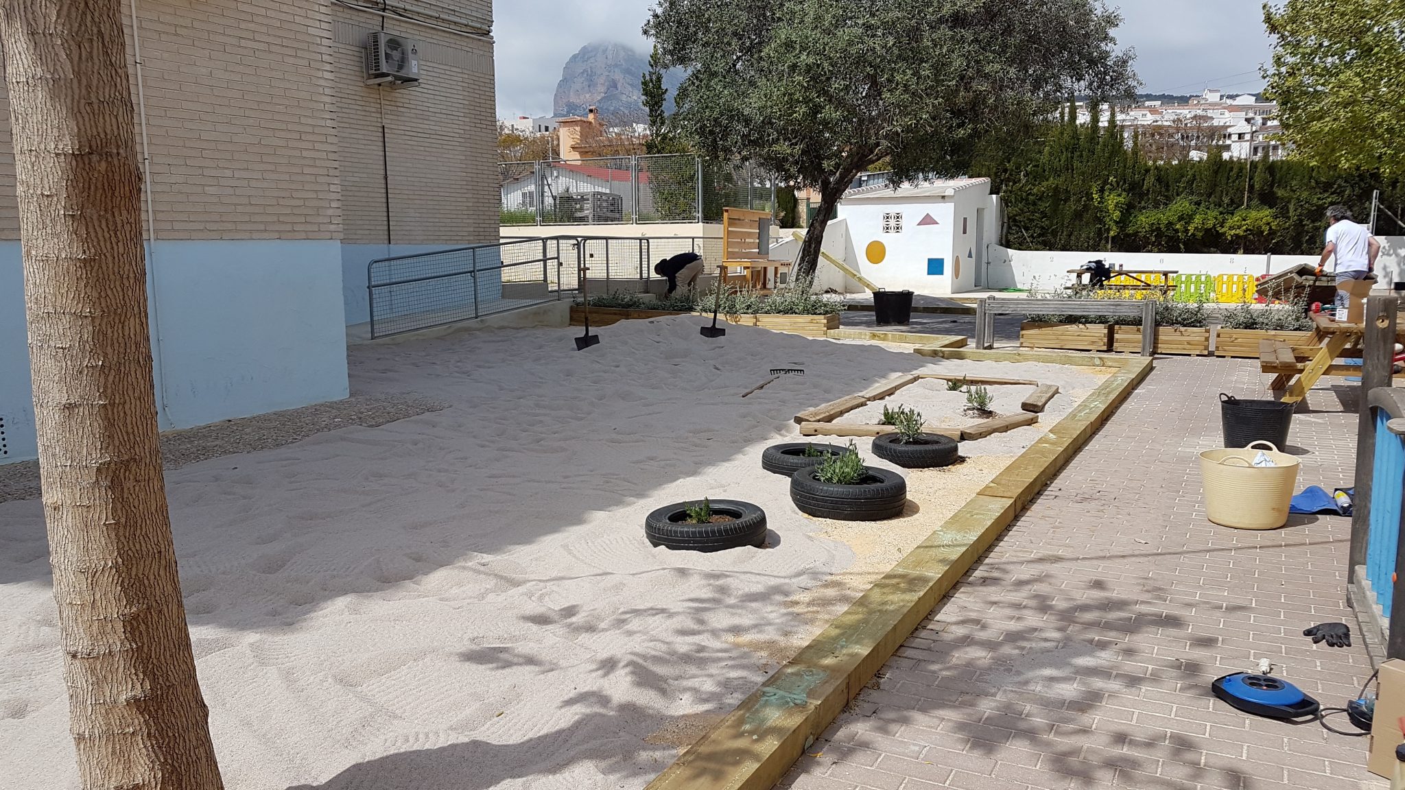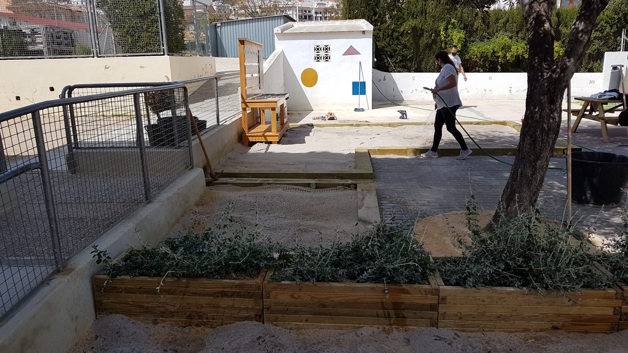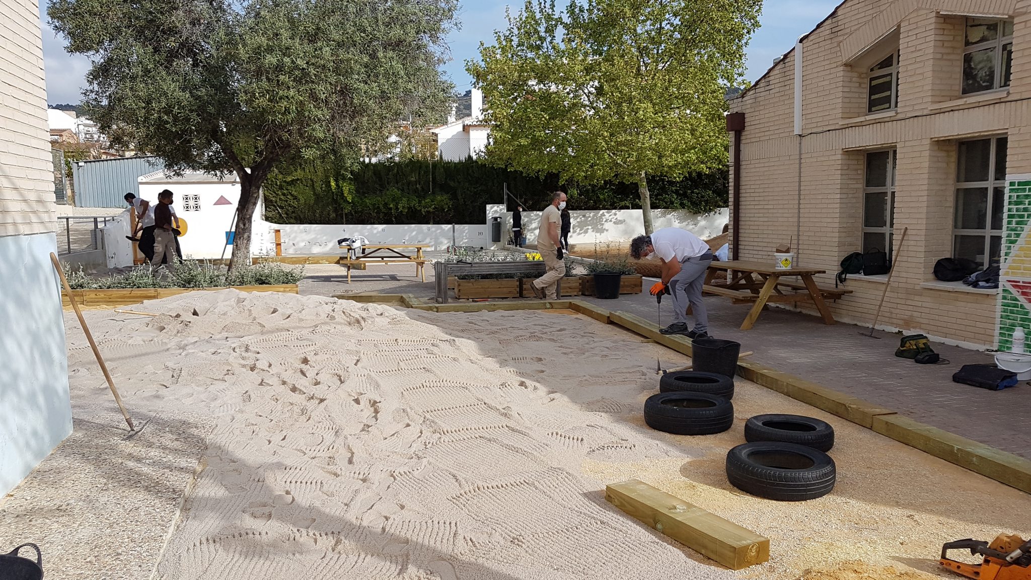 Ha estat un jornada completa, on amb els recursos humans limitats, s’ha pogut aconseguir realitzar un seguit d’accions que pràcticament han fet possible que dilluns el pati d’infantil siga totalment diferent per als nostres xiquets i xiquetes.