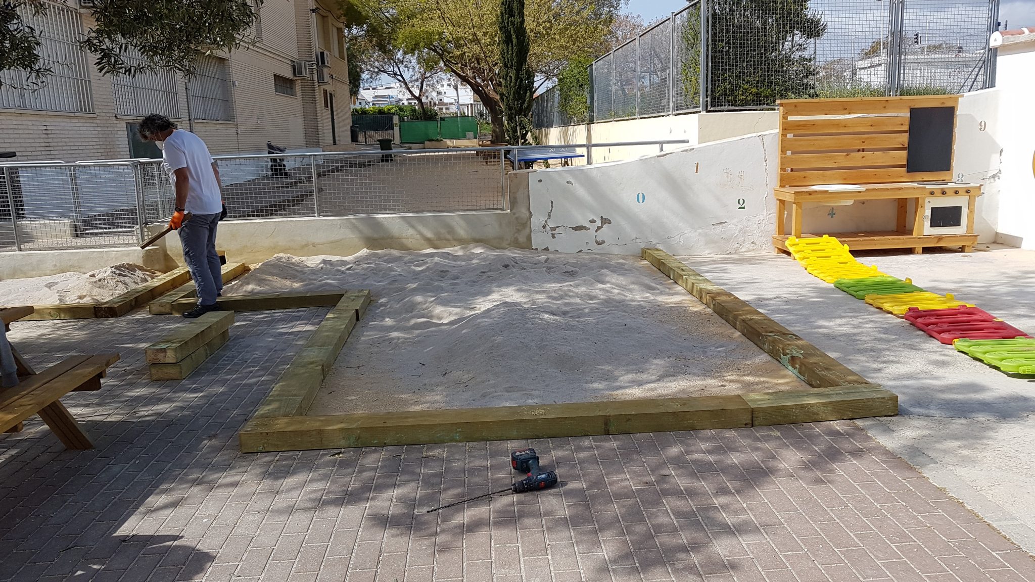 5. Distribució d’arena de sílice i col·locar cuineta d’infantil en la ubicació definitiva.
