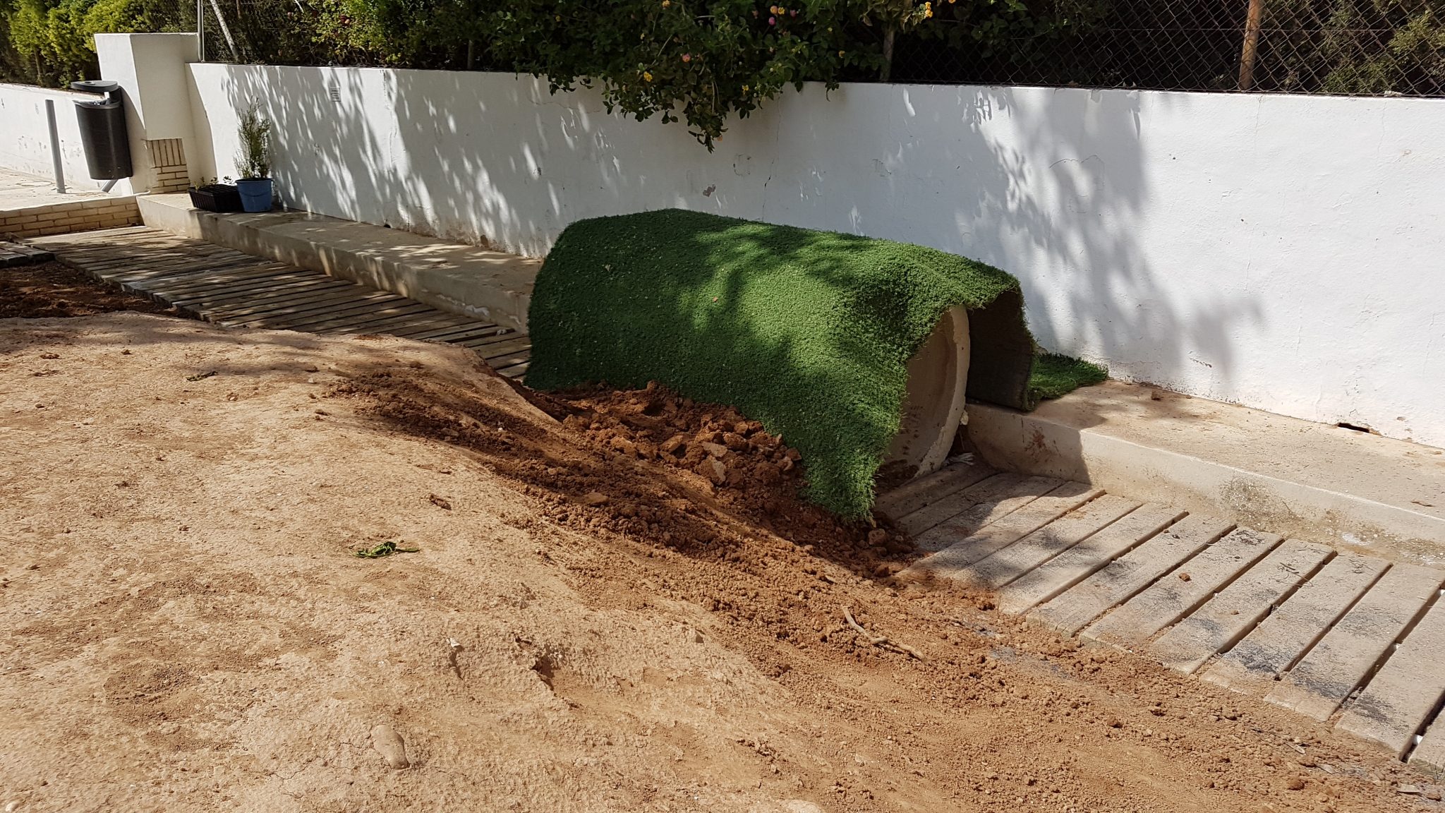 3. Col·locació de gespa artificial en el túnel creat en la muntanya.