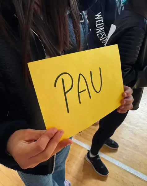 La celebració va culminar amb un acte conjunt al gimnàs del centre, on tot el centre es va reunir per compartir un moment de germanor. L’alumnnat de sisé va preparar es van convertir en poetes i van recitar uns versos manifestat la pau creats per ells i elles. Un dels instants més especials va ser la interpretació col·lectiva de la cançó “Se buscan valientes” d’El Langui, un himne que anima a posicionar-se contra el bullying i a defensar la valentia de ser respectuós amb els altres. L’alumnat va cantar amb entusiasme, omplint el gimnàs d’energia positiva i compromís.
