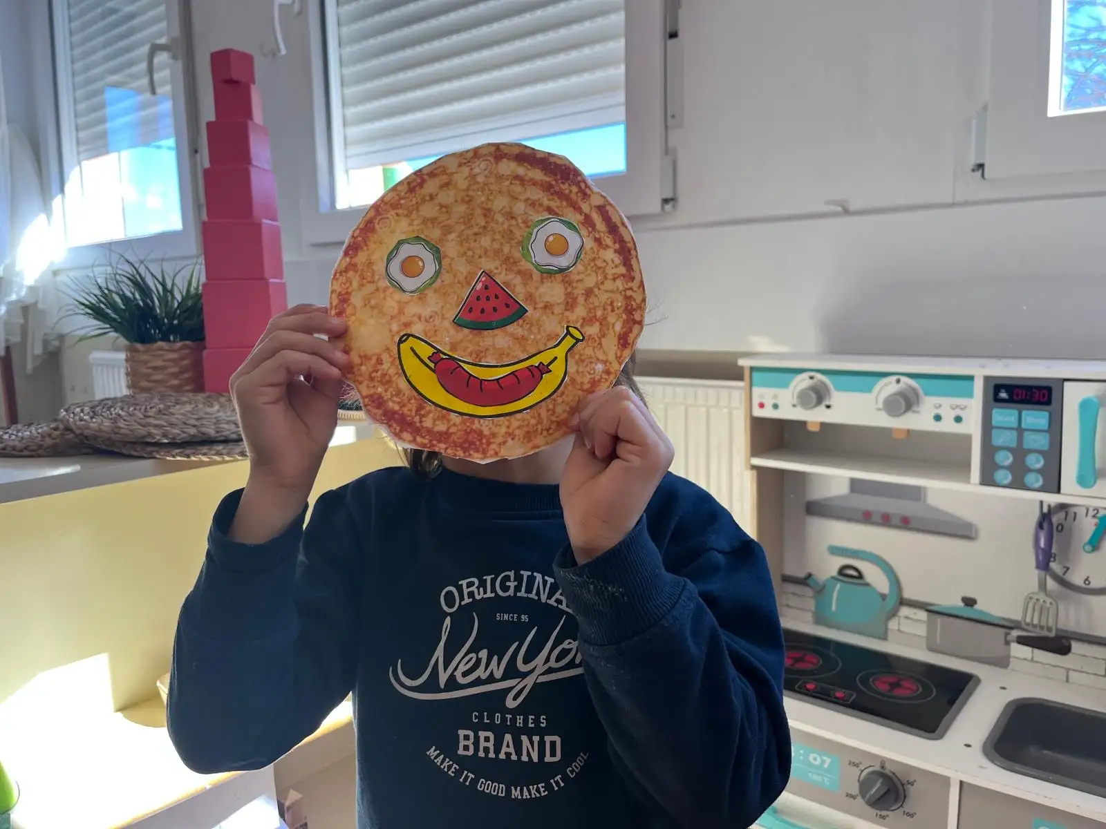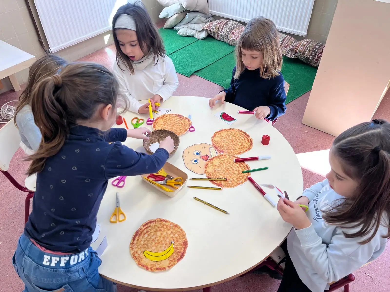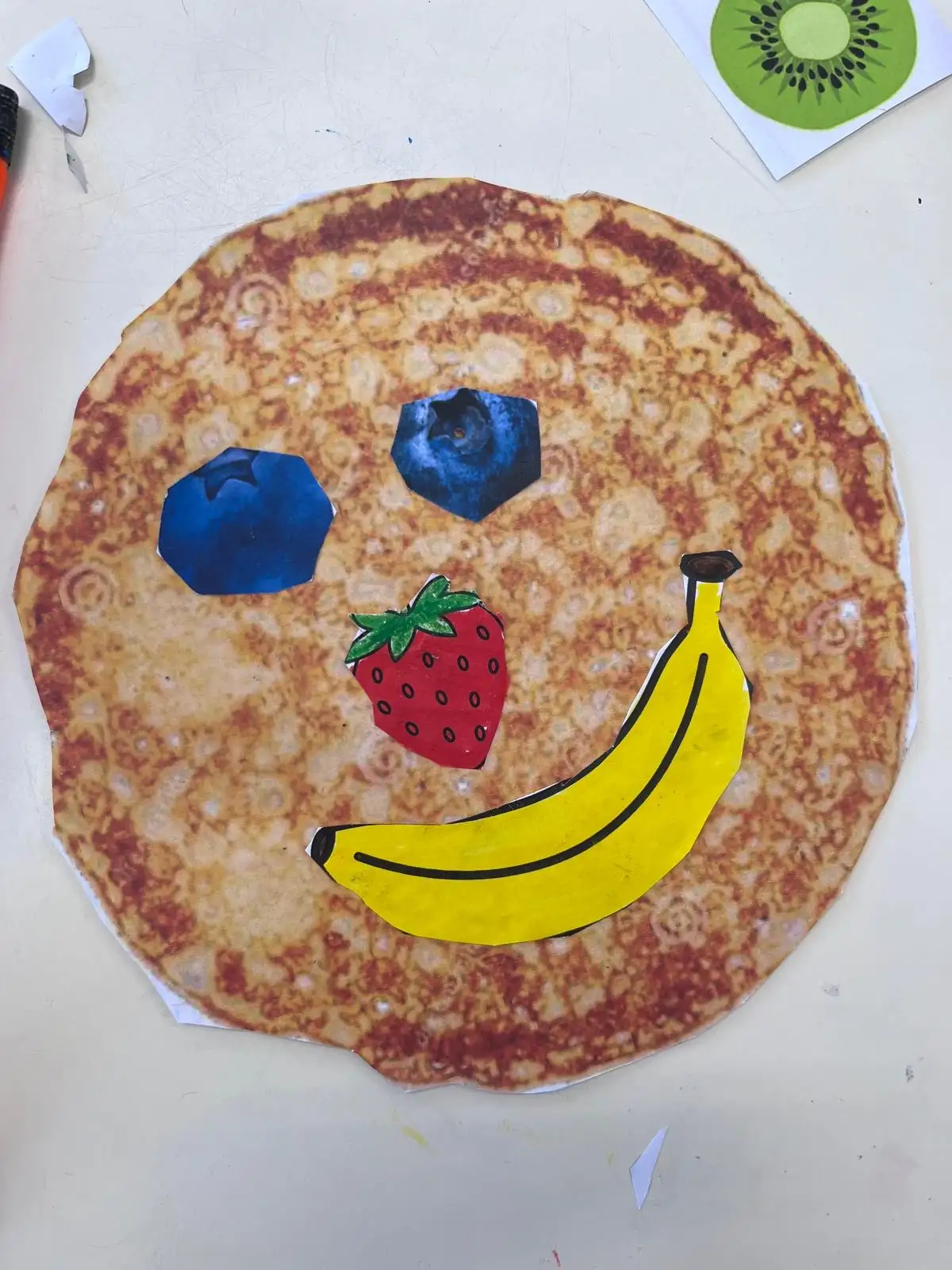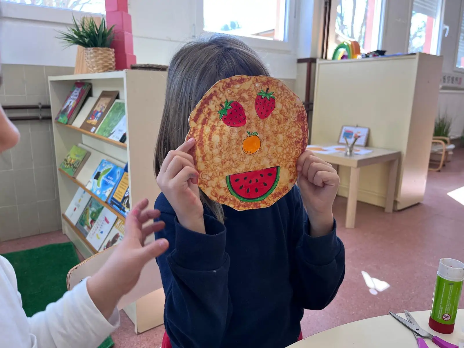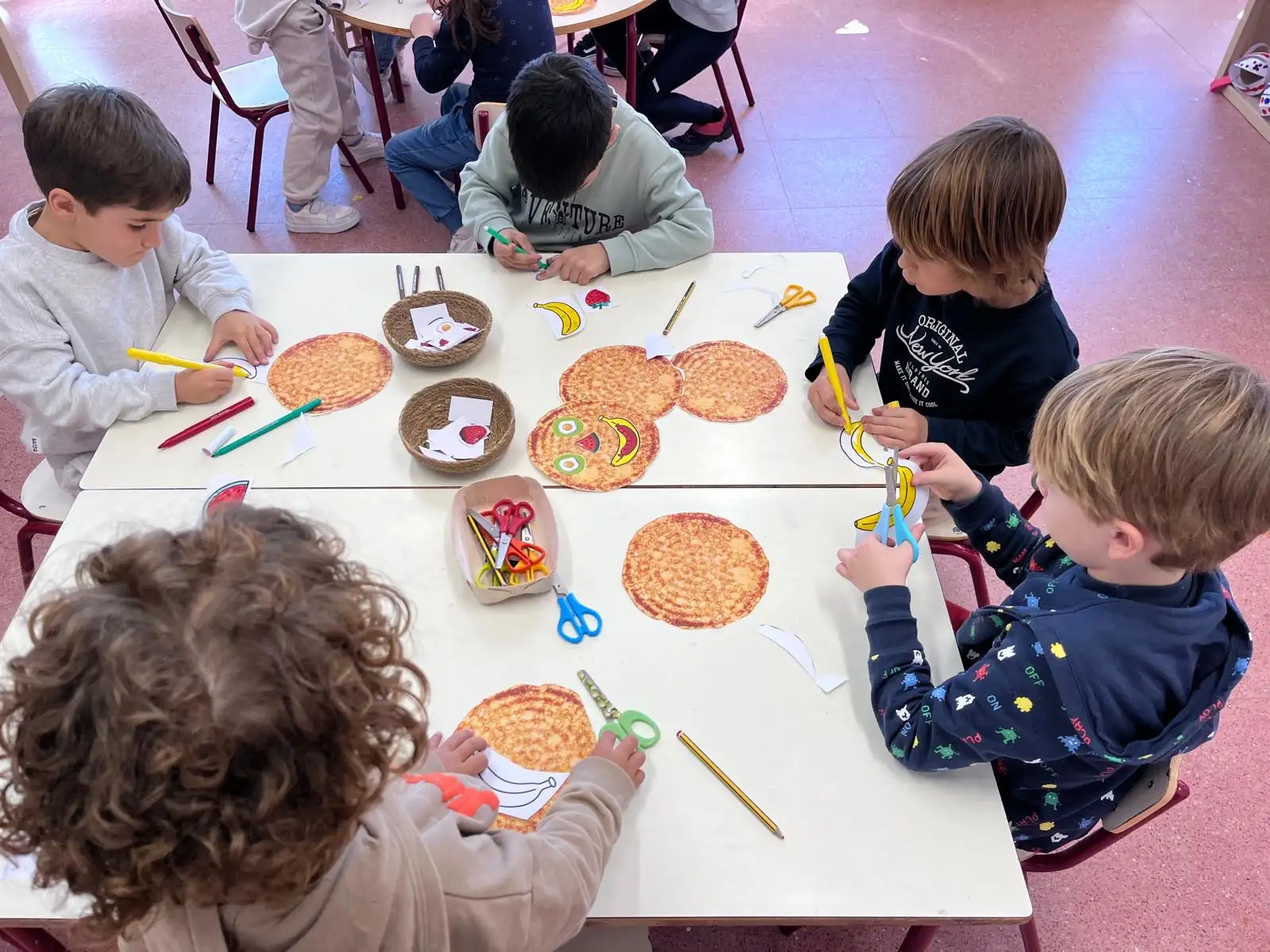 A banda, els més majors han vist en classe d’on ve aquesta celebració, i els més menuts han fet els seus propis pancakes ben divertits!