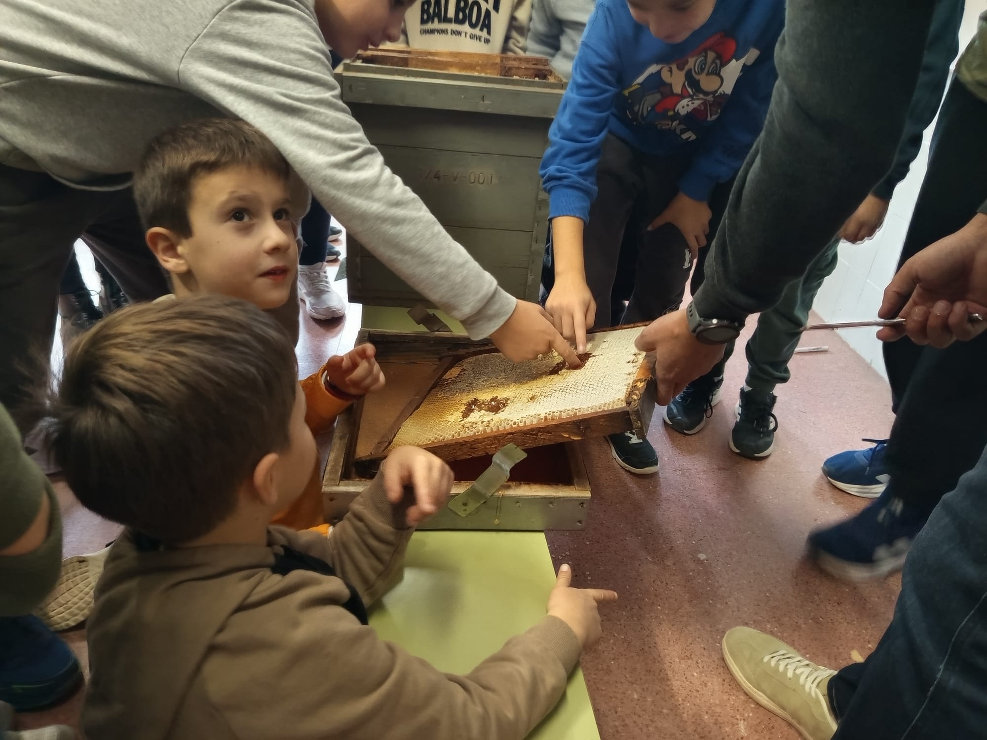 Hemos apres como trabajan las abejas, como hacen la miel y donde la guardan. También nos han enseñado los utensilios que usan para extraer la miel de manera segura, cuidando siempre de las abejas.