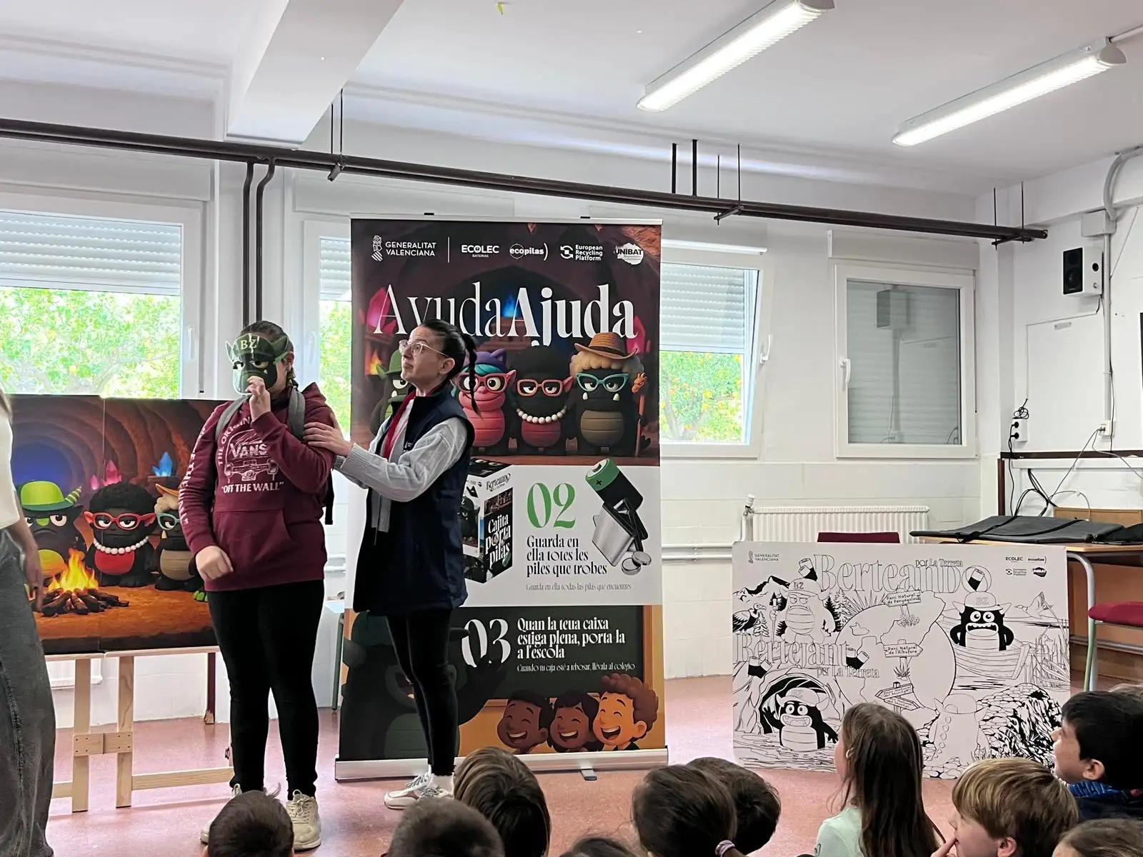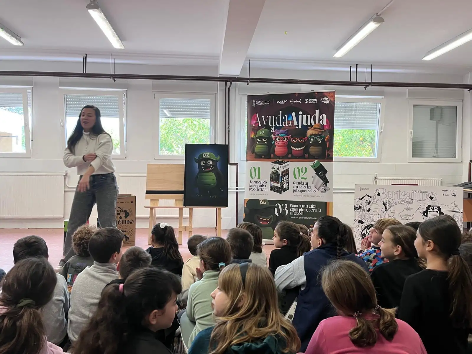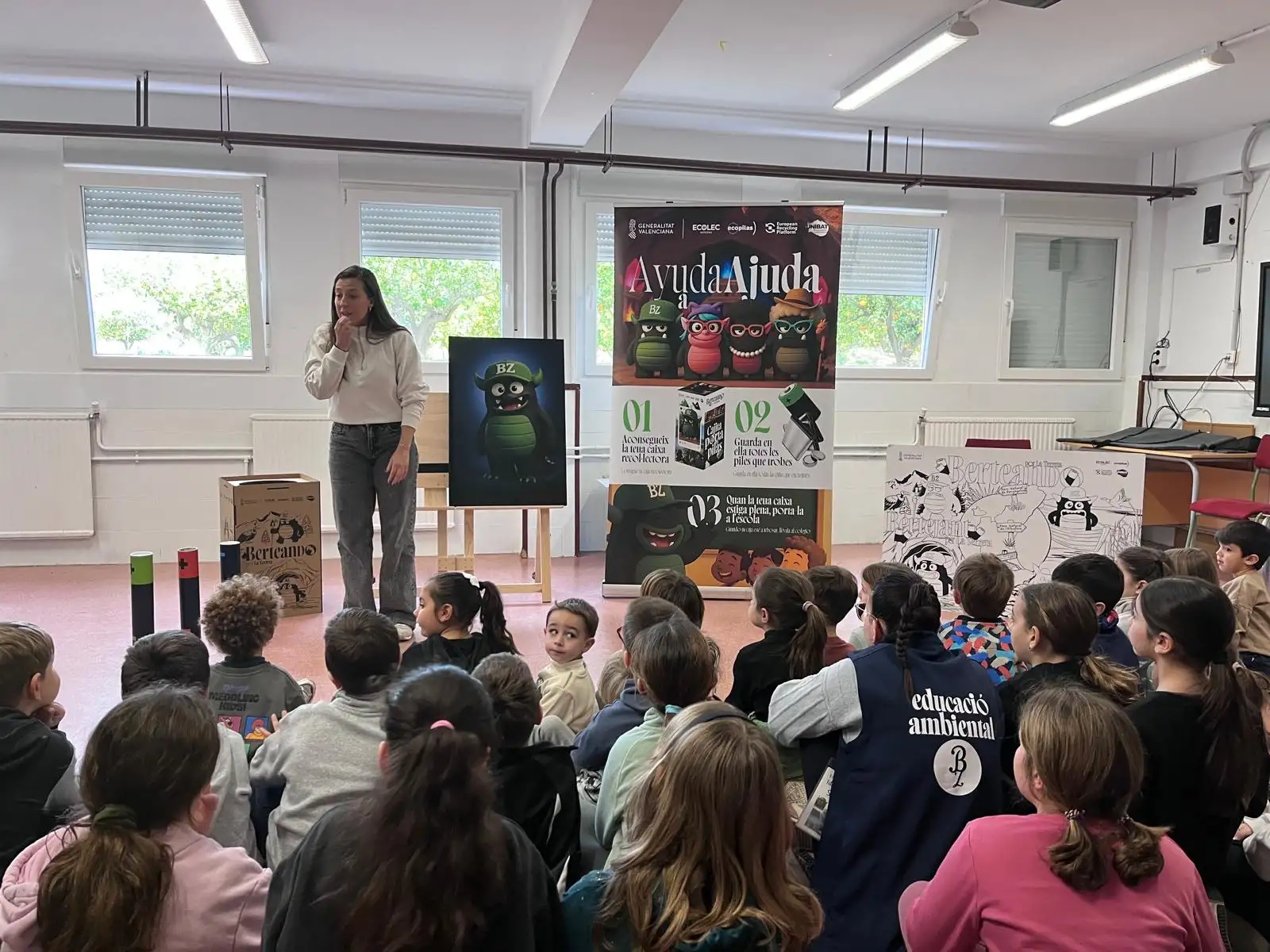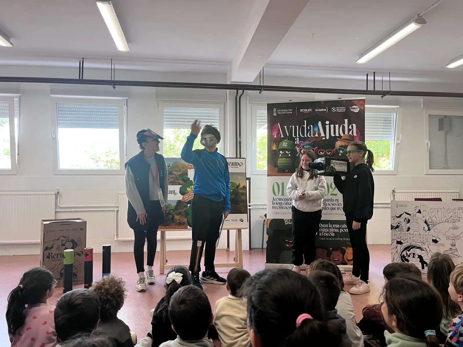 El pasado 10 de febrero disfrutamos en la escuela de una obra de teatro muy divertida y educativa sobre Berto Zampapilas, el protgonista de esta historia que vive en el planeta Carbonia. En la històra, Berto decidió venir de visita a la terreta con una misión muy importante: recoger todo tipo de pilas y baterías usadas para ayudar a cuidar nuestro planeta. A través de la obra nos explicaron la importancia de reciclar correctamente las pilas, puesto que contaminan mucho si no se depositan a los lugares adecuados. Además, nos animaron a participar en el concurso de recogida de pilas y baterías porque entre todos y todas podemos contribuir a proteger el medio ambiente.
