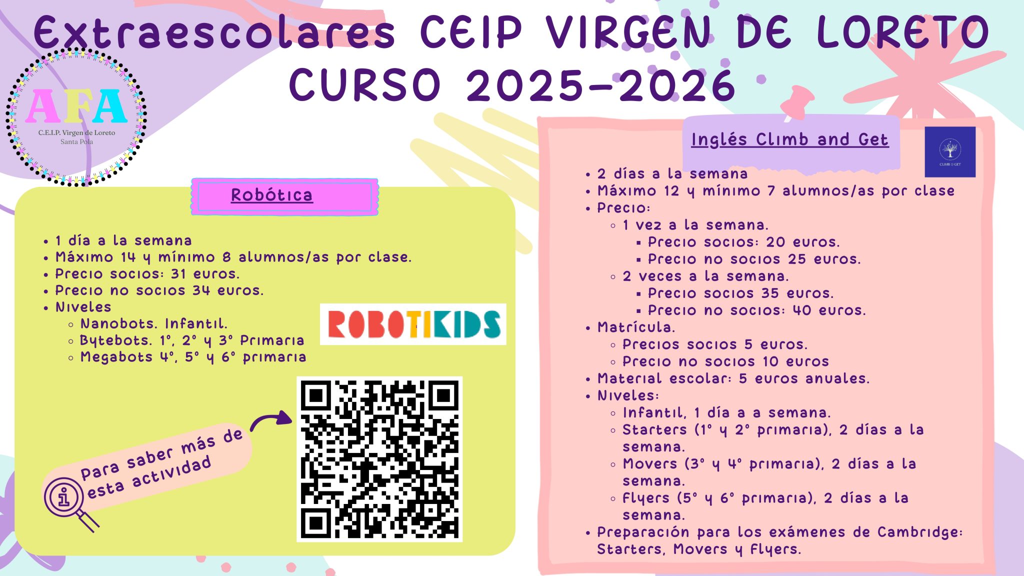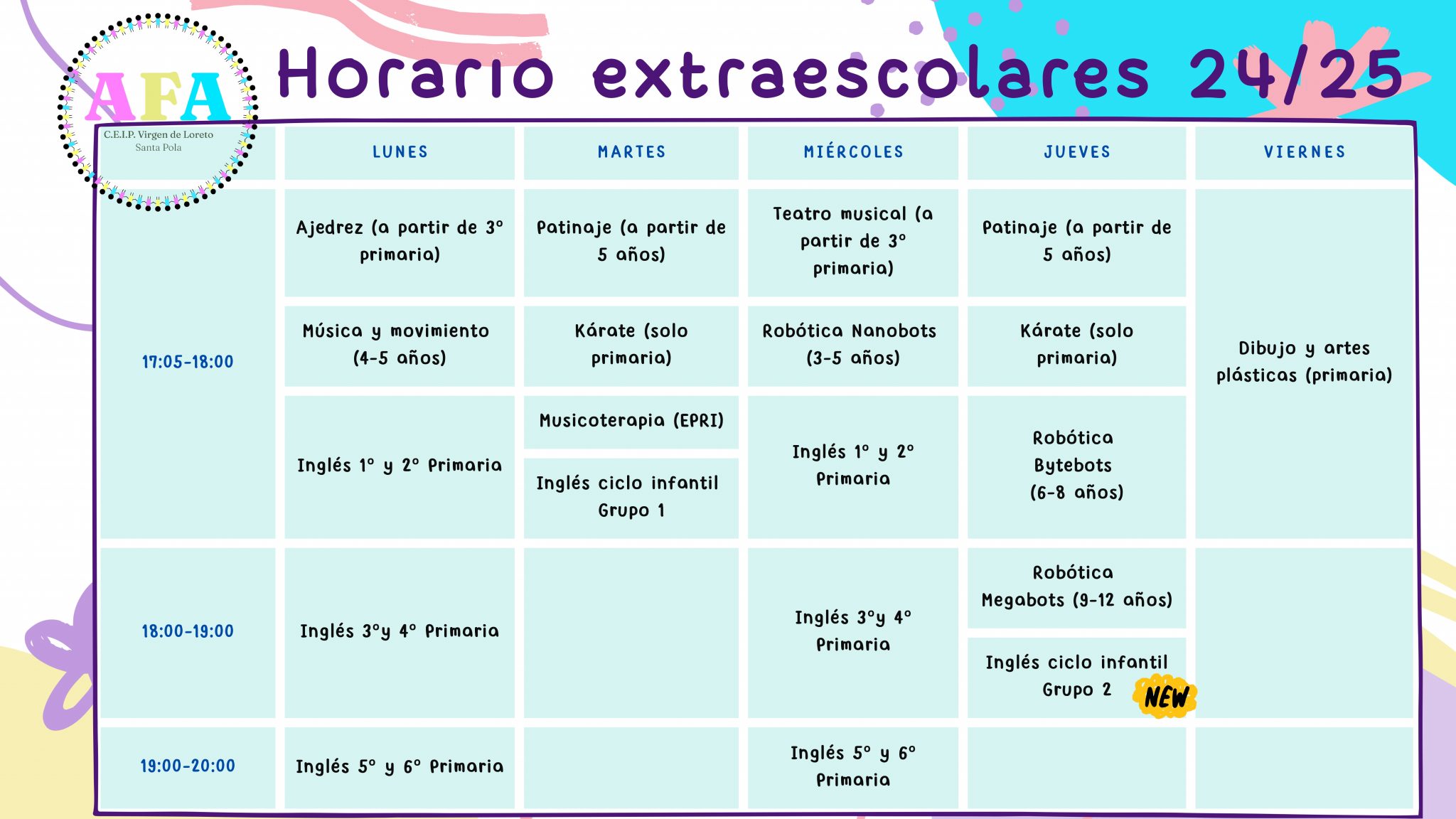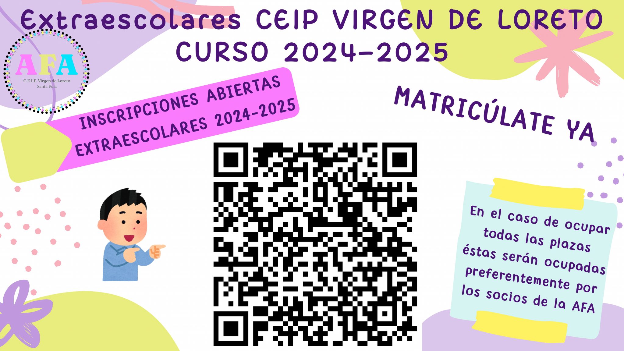 La nueva junta de la AFA del CEIP Virgen de Loreto, atendiendo a la necesidad que nos habéis trasladado varias familias de la posibilidad de implantar un aula matinera, y tras hablar con el Equipo Directivo del centro e informarnos este que llevan varios años intentándolo y no hay niños/as suficientes, nos hemos puesto en contacto con las AFAS del Joanot Martorell y Azorin para abrir un aula matinera conjunta en el CEP Azorin.