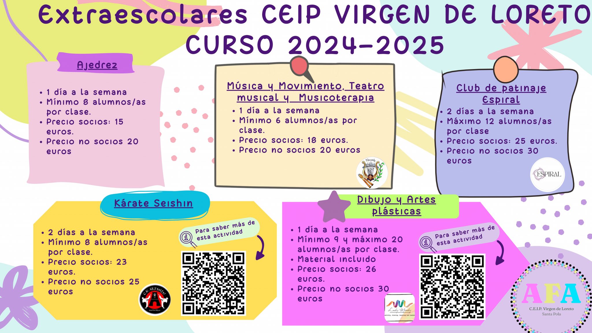 - Descuentos en diferentes comercios del pueblo. Se entregarán CARNETS para socios del AMPA con el fin de obtener beneficios y descuentos en diferentes establecimientos: DESCUENTOS presentando el carnet de socio del AMPA Virgen de Loreto durante el curso escolar de Septiembre a julio