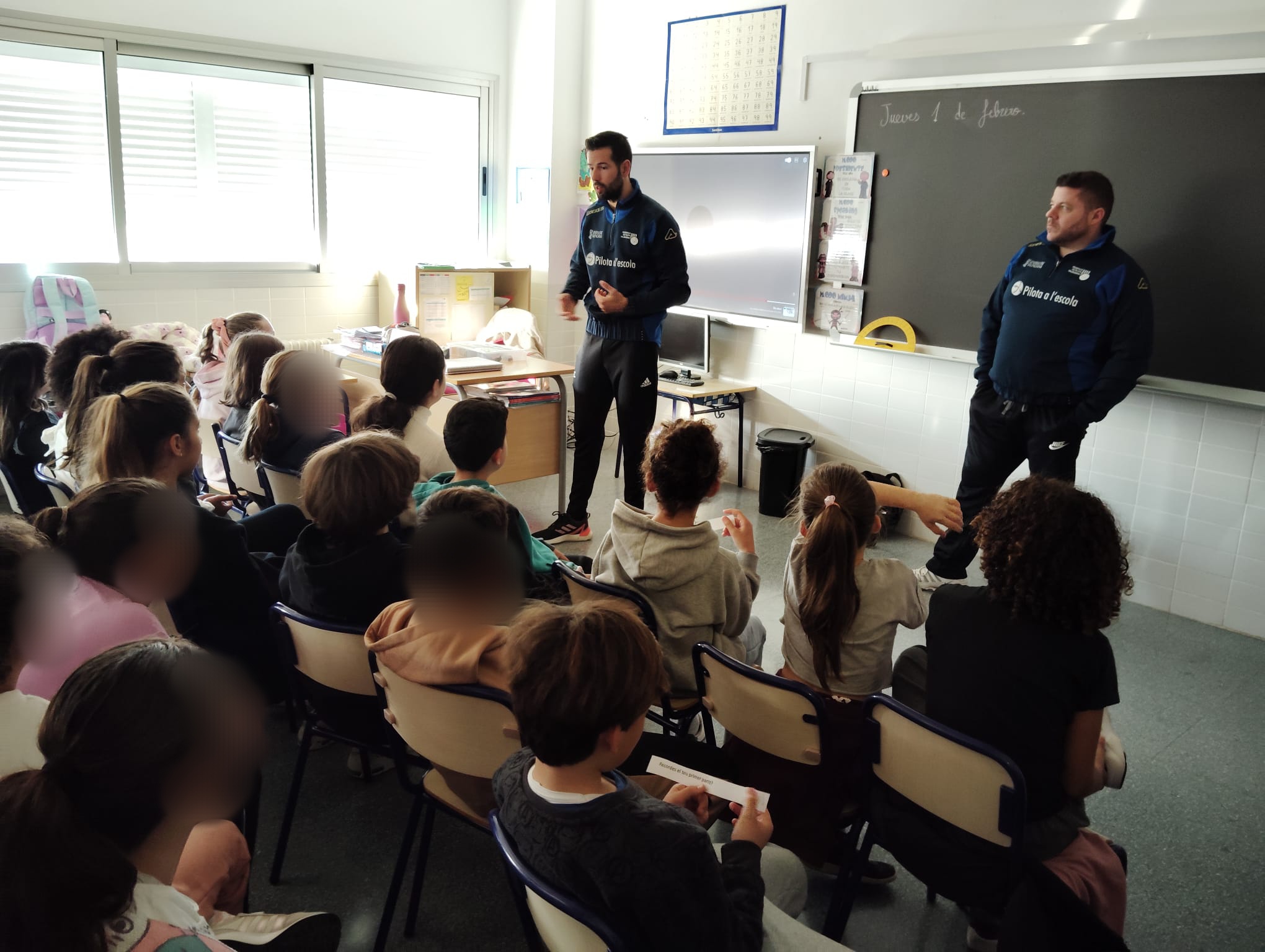 Aquest dijous 1 de febrer l’alumnat de 4t de Primària ha rebut la visita de dos jugadors professionals de pilota valenciana. Hem pogut conèixer de primera mà més detalls d’aquest esport, curiositats, els hem fet una entrevista i també ens han ensenyat i ens han donat consells per jugar millor a les modalitats de raspall i al frontó.