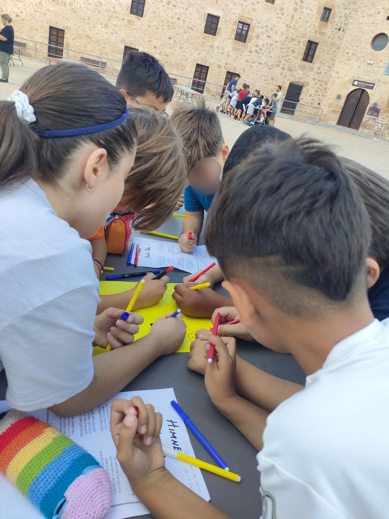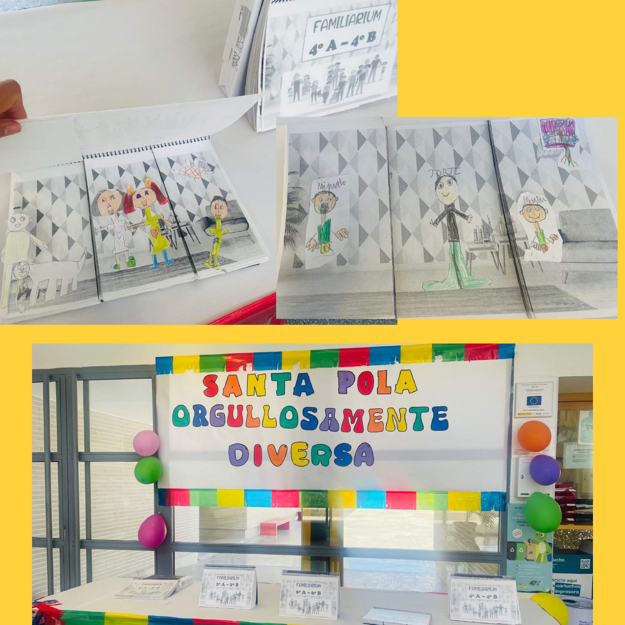 A més, enguany la biblioteca ens han preparat un taller on els alumnes de tercer de primària han decorat i pintat un mural amb imatges de localitzacions i elements característics de Santa Pola. I l’aula EPRI ha decorat una de les lletres grans de Santa Pola de color blau (la P).