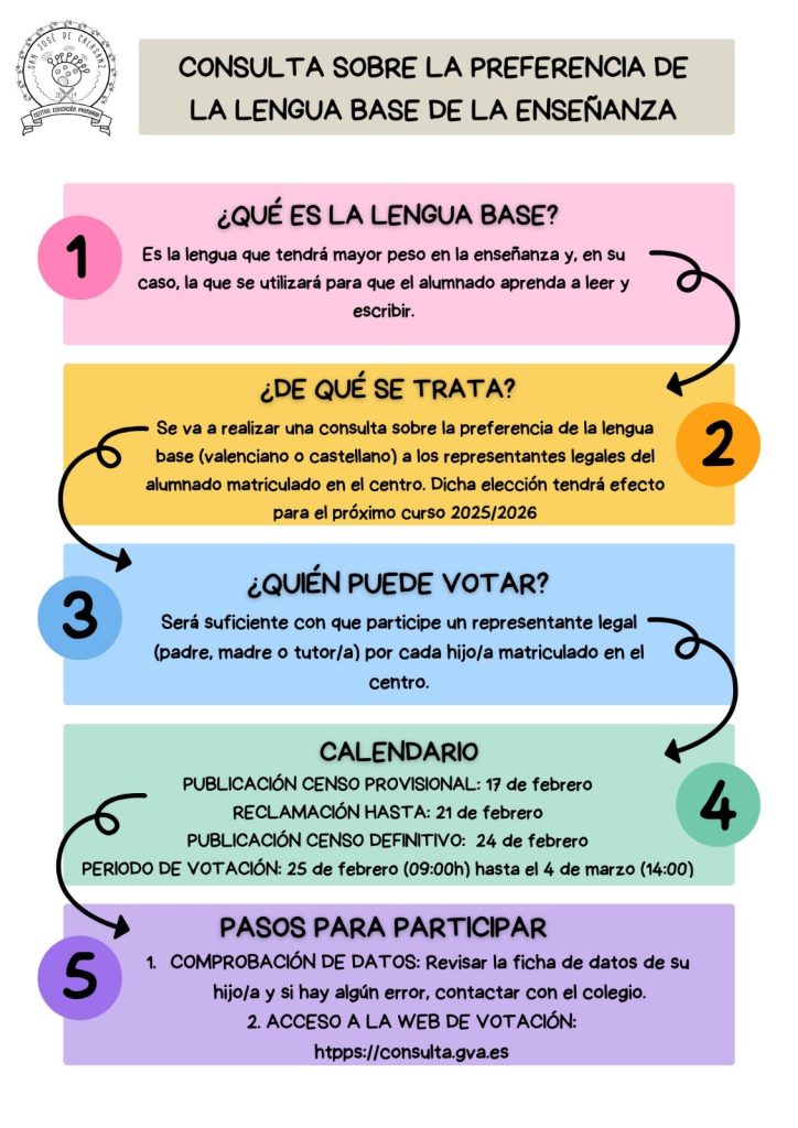 El próximo 25 de febrero a las 9 horas se abre el plazo de consulta a los representantes legales del alumnado para elegir la lengua base aplicable a partir del curso académico 2025-2026.