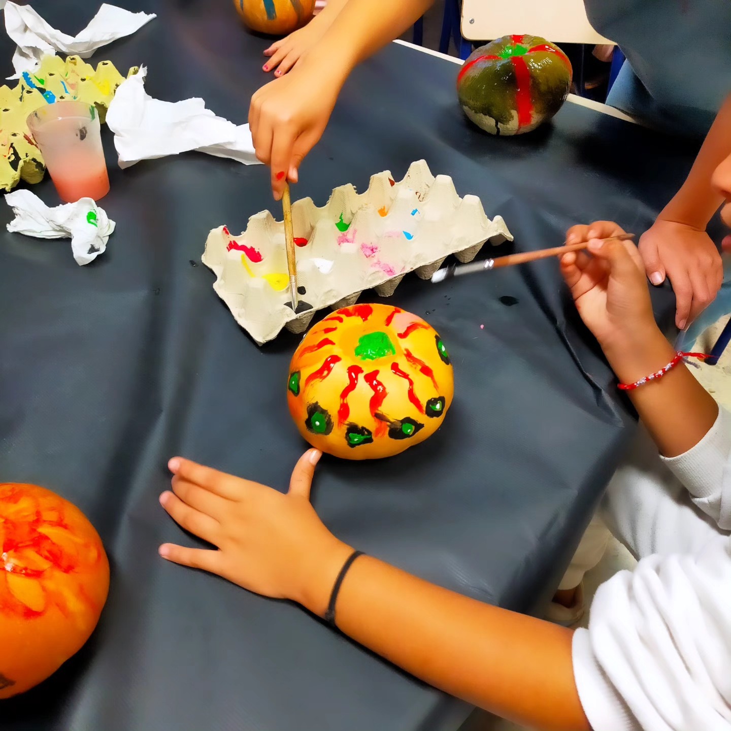Yesterday 1st, 2nd, 3rd and 4th grade painted their Halloween pumpkins ![]()