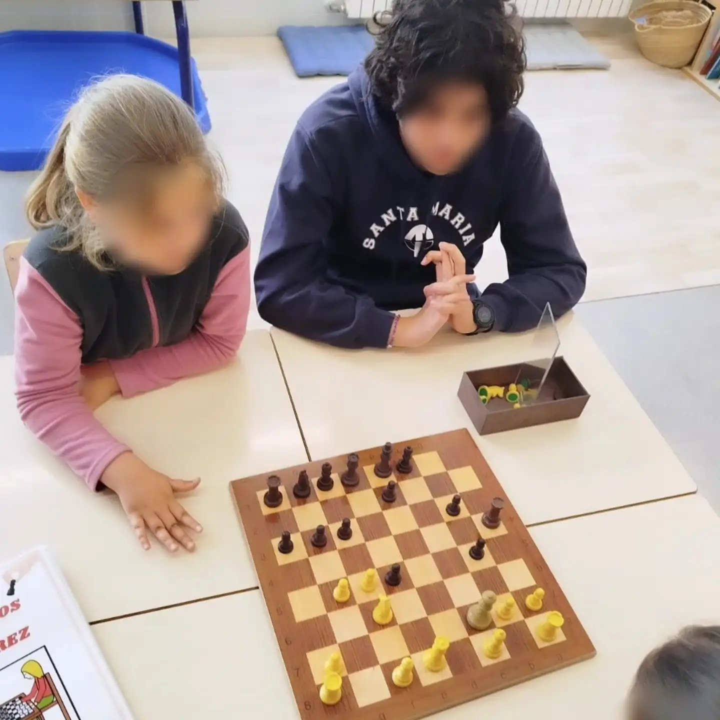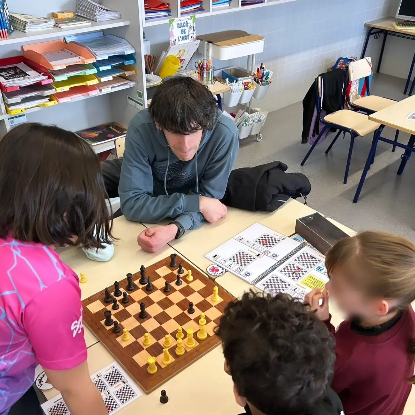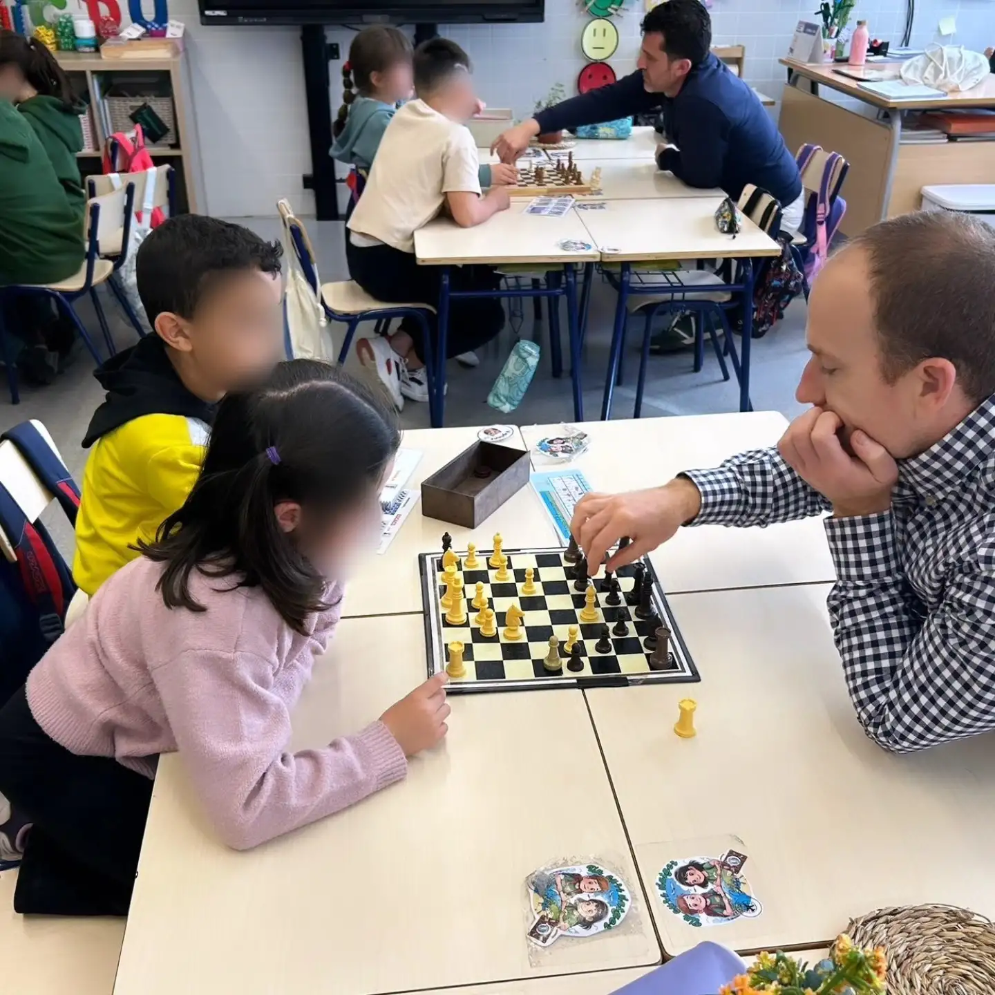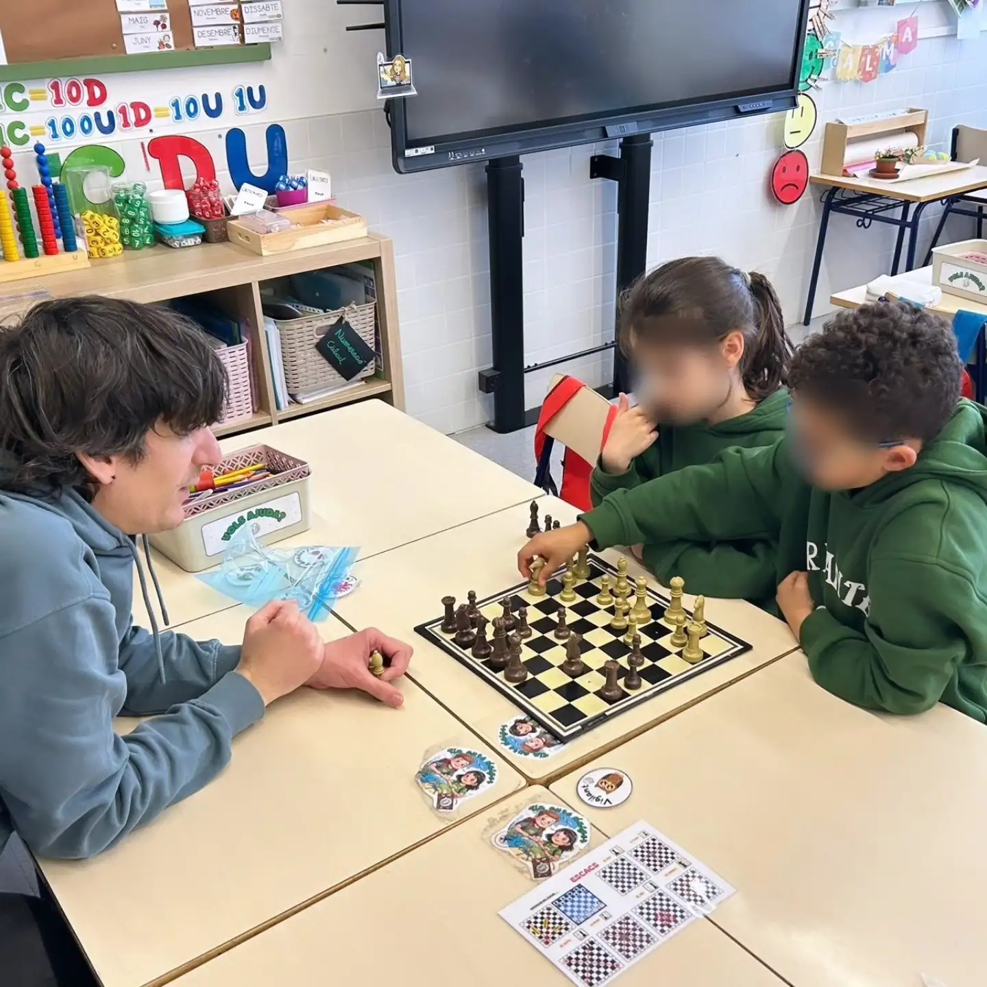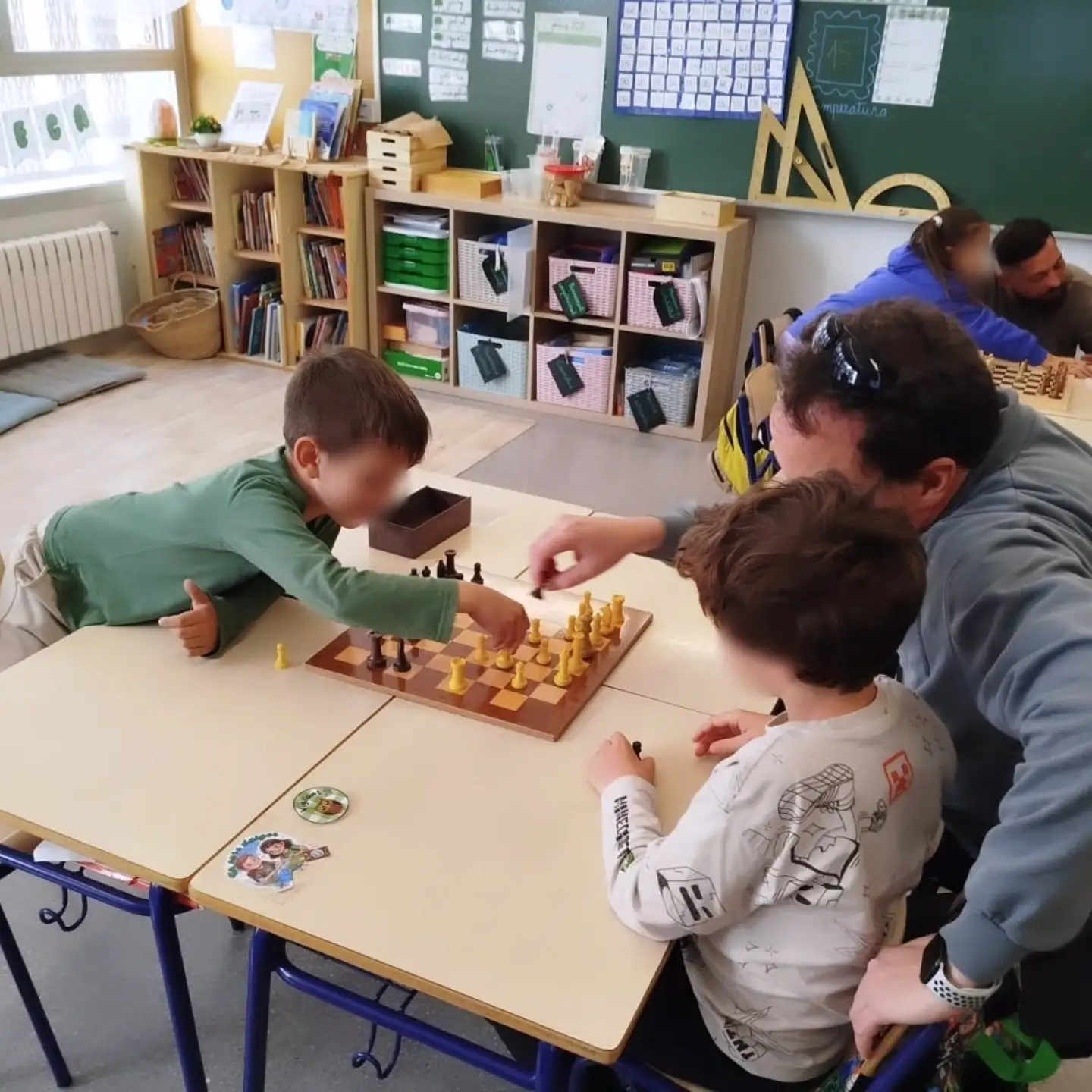 : les nostres famílies han vingut a l’aula per ajudar-nos a aprendre i avançar en els escacs. Junts hem compartit estratègies, trucs i, sobretot, hem aprés la importància de la paciència, una habilitat clau en este joc.