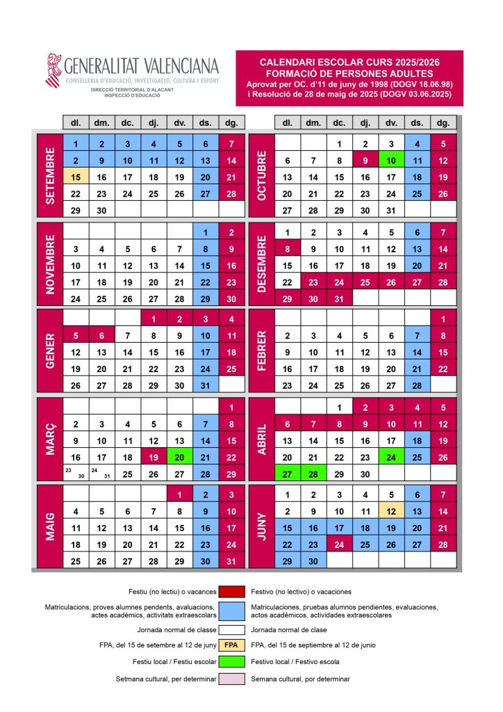 En Formació de Persones Adultes, les classes començaran el 15 de setembre de 2025 i finalitzaran el 12 de juny de 2026.