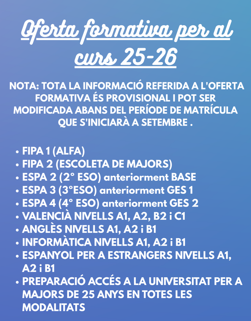 Ací podreu trobar tota la informació relacionada amb la nostra oferta formativa.