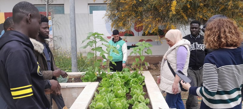 Salva, de la asociación de vecinos y vecinas de la Fuensanta, nos explica lo que están preparando en el patio.