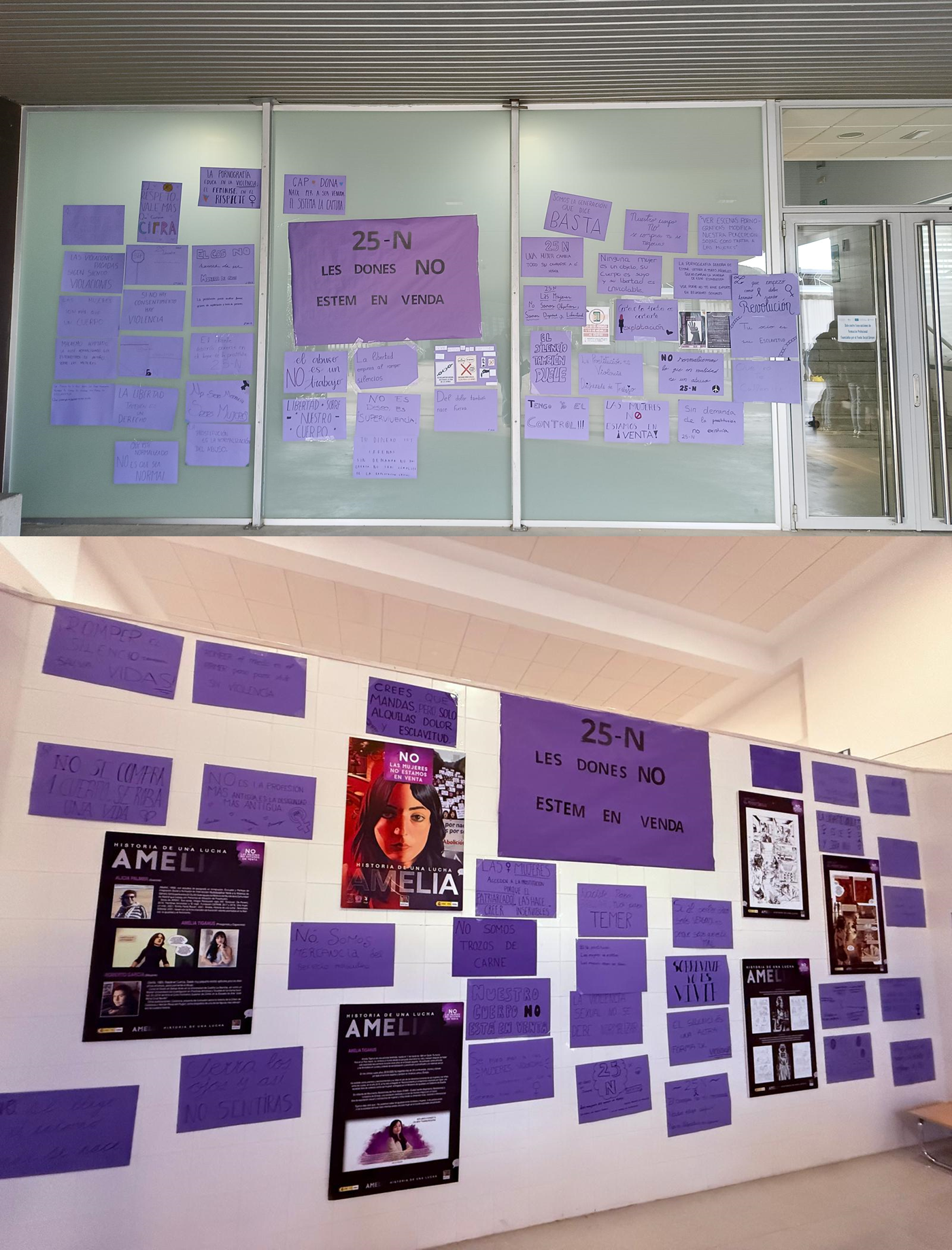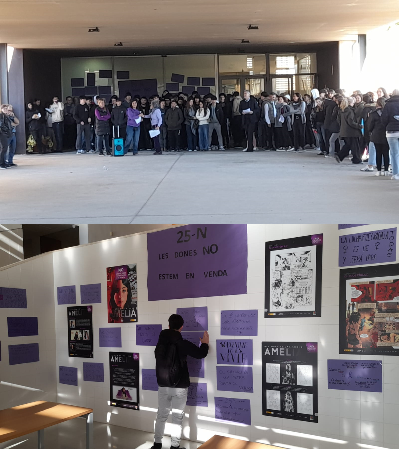 Als dos edificis de l’institut podem trobar els murals amb la frase i si passegem un poc per aquest trobarem l’exposició il·lustrativa del llibre-còmic Amelia. Historia de una lucha.