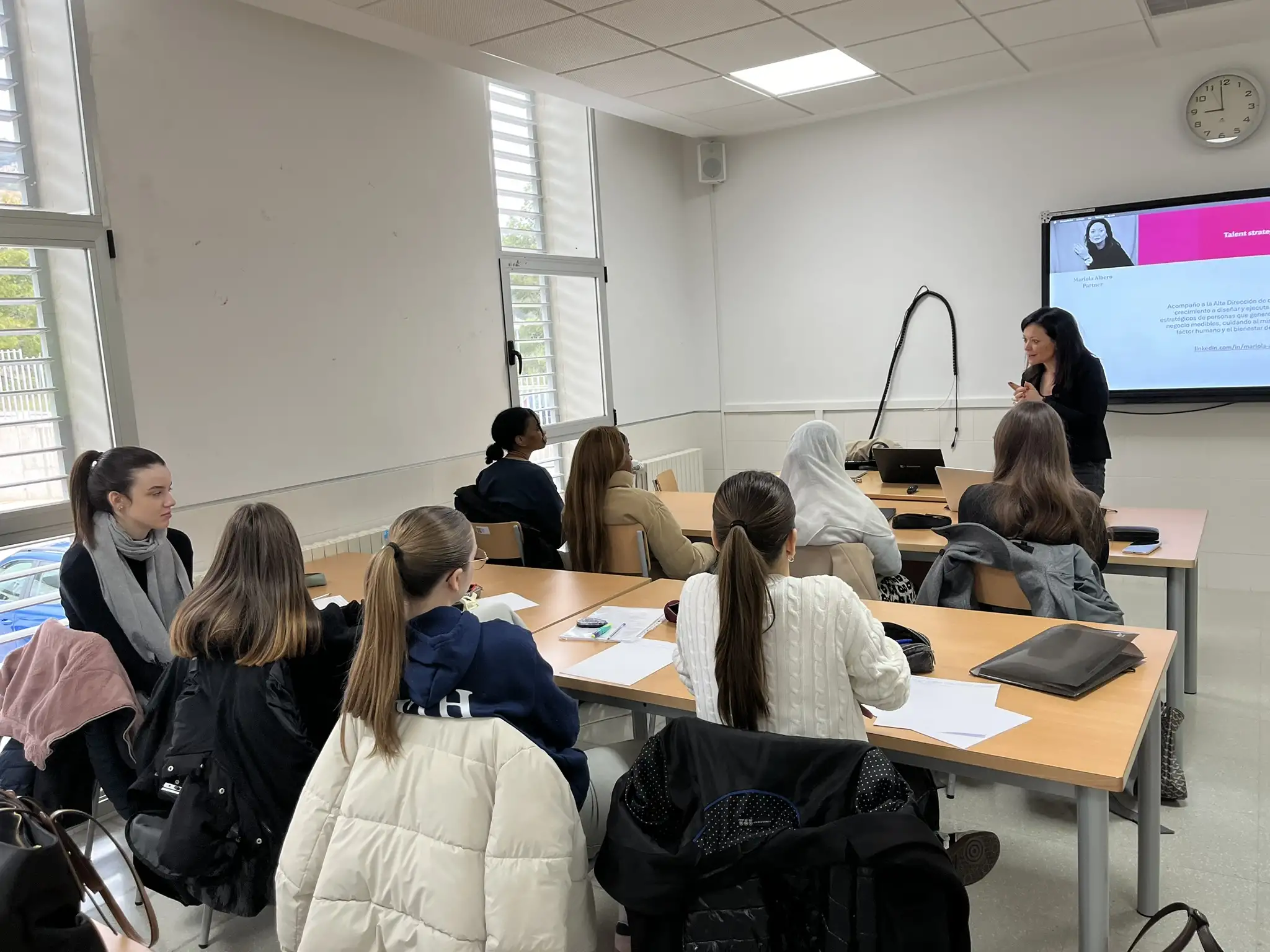 Va explicar què era per a ella “el millor i el pitjor” del seu treball en RRHH. La part més satisfactòria era seleccionar persones i formar-les; la més dura, haver de prescindir d’algú o no poder comptar amb totes. Aquest contrast va donar al nostre alumnat una visió real i humana del que implica treballar en aquest àmbit.