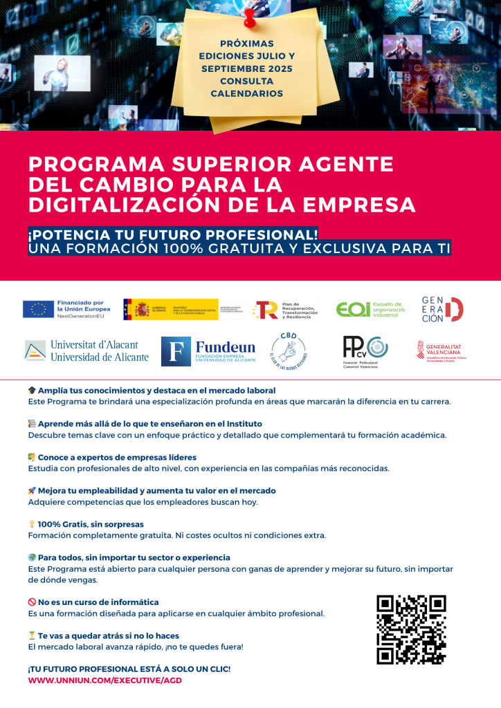 La Universidad de Alicante va a realizar un curso semipresencial de 150 horas denominado Programa Superior Agente del Cambio para la Digitalización de la empresa.
