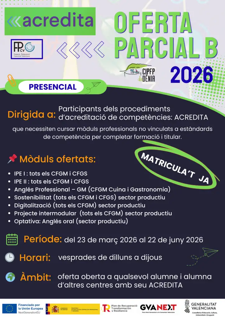 L'Oferta Parcial (mod. B) permet cursar mòduls específics d'un Cicle Formatiu, sense la necessitat de matricular-se de tot el cicle.